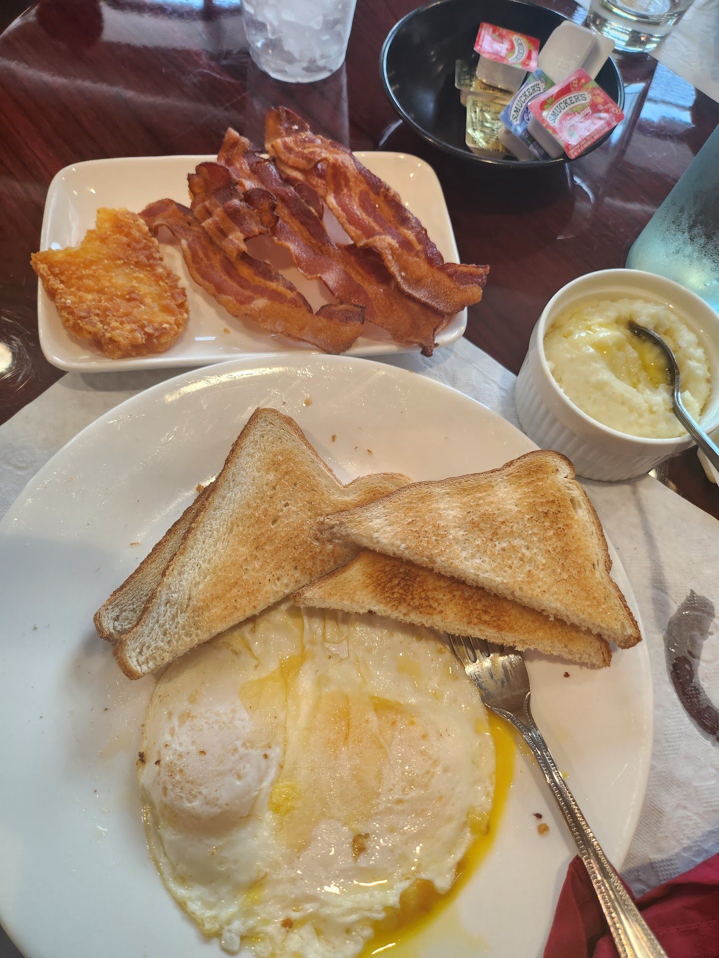Read more2nd time there today Sunday Dec 15. Arrived with a party of 4 and told Owner possibly/ very fare skin older woman with dreads that my parents were also joining us. She told me to "go stand over there and she'd get us set up". Some time passed and she came over and asked if i was sure they were coming? I said yes and that we could sit because id like coffee etc. Her reply was very blunt and rude and she said that they normally dont do that and sat us. When we finally sat and waited my son asked her if we could order AGAIN she was very rude.....begrudgingly took our order. She heard me chuckle and told me that i may be used to getting my way and she knew why i was laughing and they do things her way there!!!!!...because i respect my elders i didnt reply but she is extremely rude and i noticed other patrons complain about her in their reviews..... when i asked for more coffee she didnt say a word just brought it out....NO CUSTOMER SERVICE and its very sad..... my parents arrived and came and sat down her reply to them was "oh yall just sat down"? My mom asked her what were they supposed to do?? We asked about the jazz bands schedule and she was rude again. My family were all coming from sunday service, looked sharp and tried to be so friendly but that lady really killed the mood and my brother told her so. The co-owner maybe husband? Was a nice gentlemen but i won't patronize their establishment again... Food was ok but definitely not good enough to deal with her again. Very sad and i wanted to tell others to go and try...