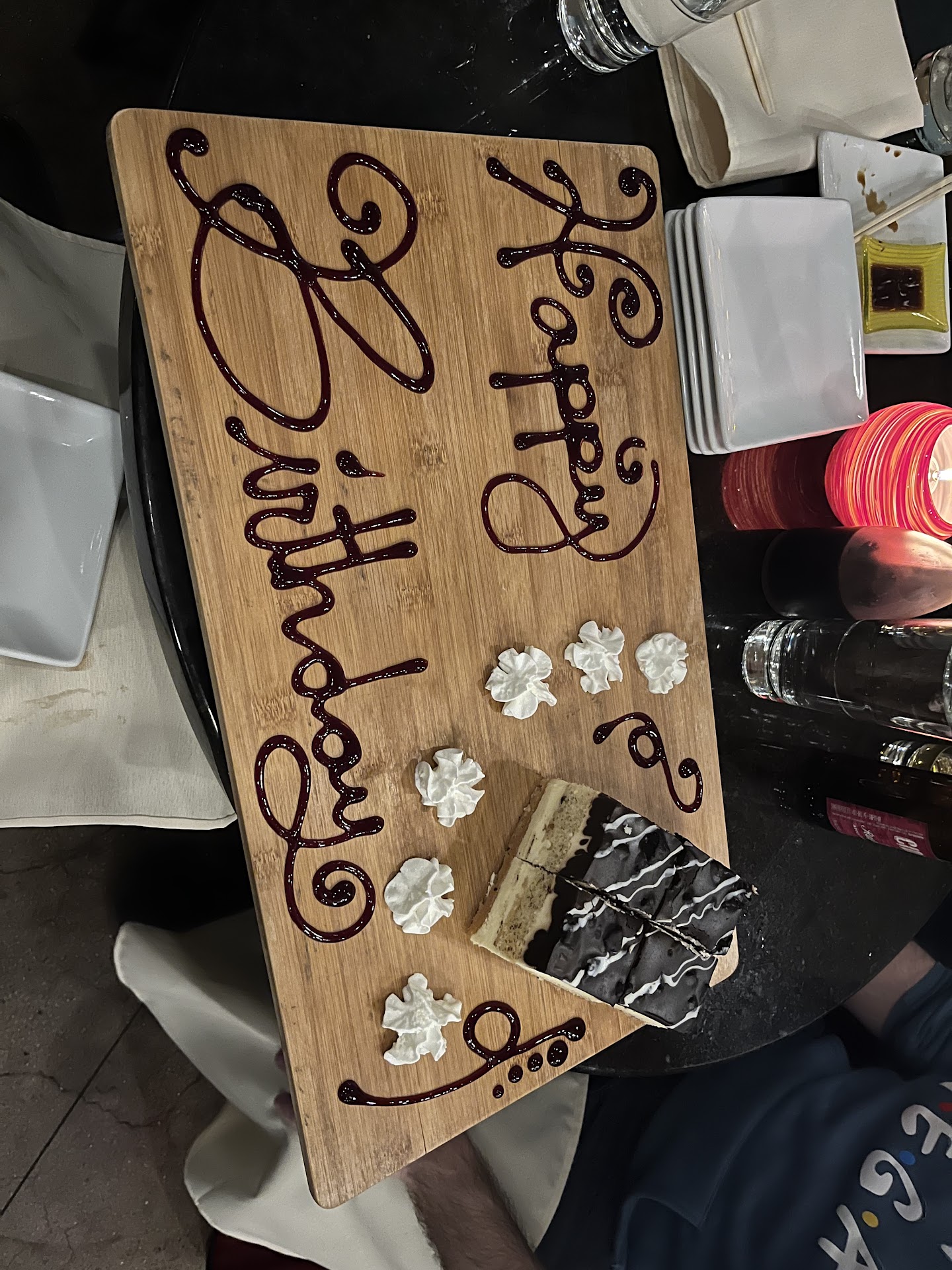 Our waiter was very kind and conversational, and since we were celebrating my birthday, he brought out a plate with two mochi confectionaries, which were a welcome and unprompted treat.