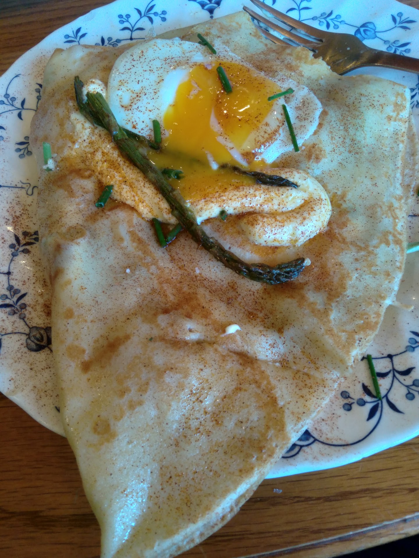 Read moreI've been here 5 times and it's okay. I want this place to succeed because it's the only one of its kind, and it IS cute and niche. My stars are mostly due to being a vegetarian. They DO have vegetarian and vegan options, but every single time, they have been out of something on the vegetarian section OR if it's within the first hour of being open, still an issue where they aren't making 1-2 of the options. There is, at least, typically 3-6 vegetarian/vegan options to choose from, but I must say all 5 times it's been a bit underwhelming taste-wise. The most recent crepe I had was not fully cooked (very gummy and soggy), which is only mostly a problem BECAUSE this is a crepe place. That's all they make, not sure how this outcome happens. Especially for the $16 menu item.