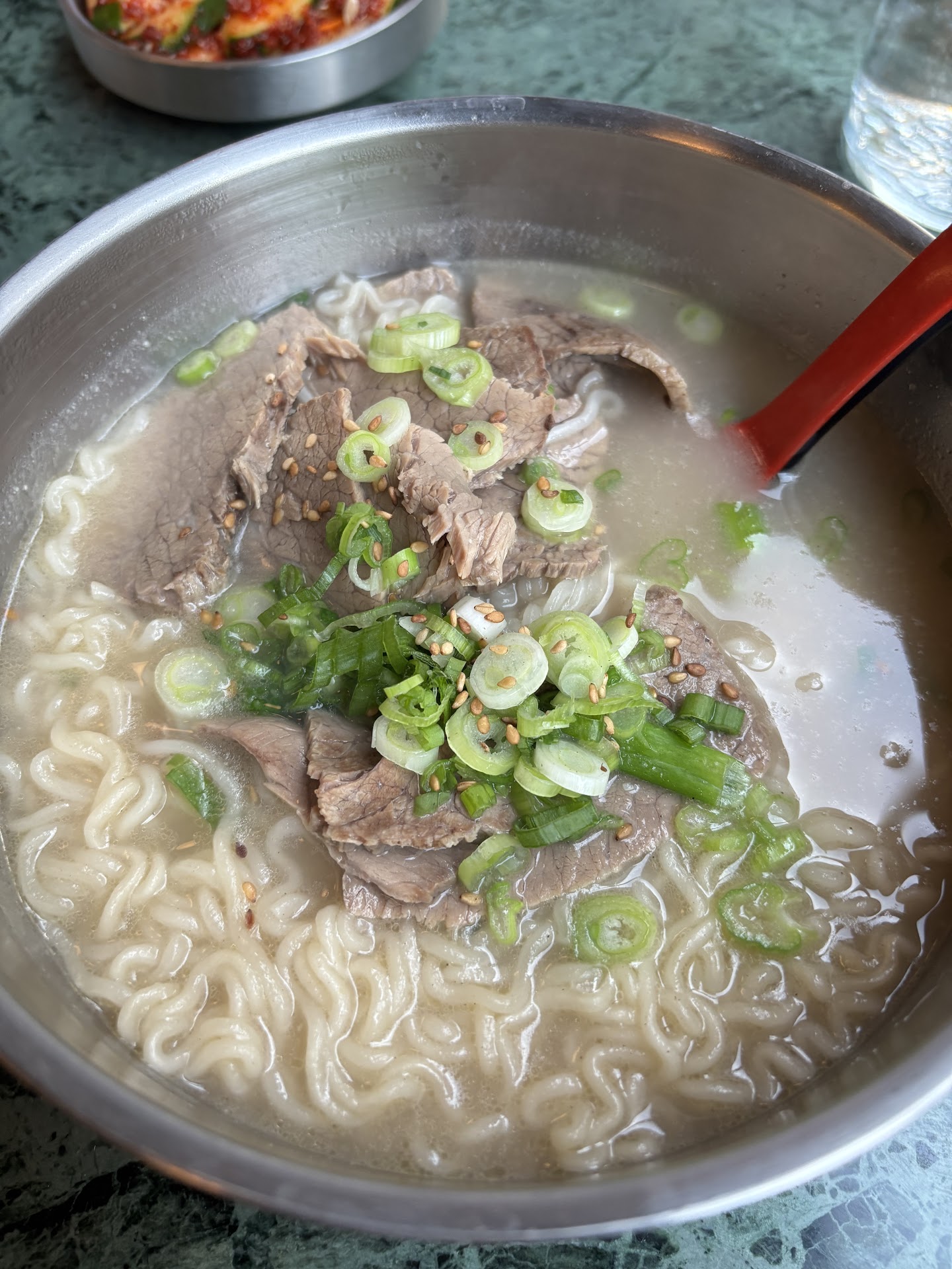 The Seoul Beef Ramen (ě¤ë í ëźëŠ´) was accurately described, beef is thinly sliced and broth seasoned correctly (albeit heavy on the black pepper).