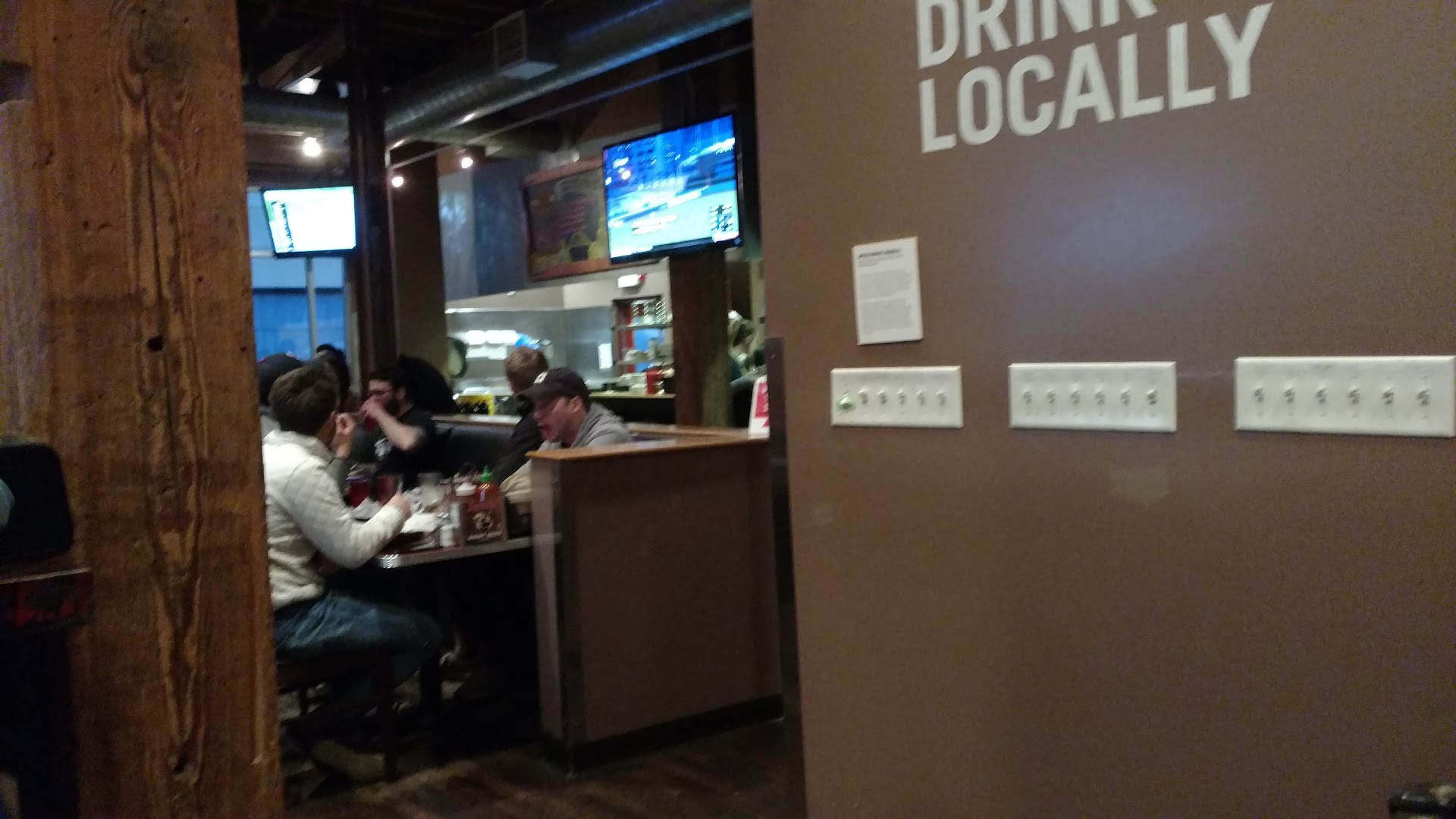 I really liked the overall atmosphere right away. The outdoor seating looks like it would be a great place to hang out in better weather. Inside was comfortable with plenty to look at. The well-placed TVs had both the baseball game and the football game on.