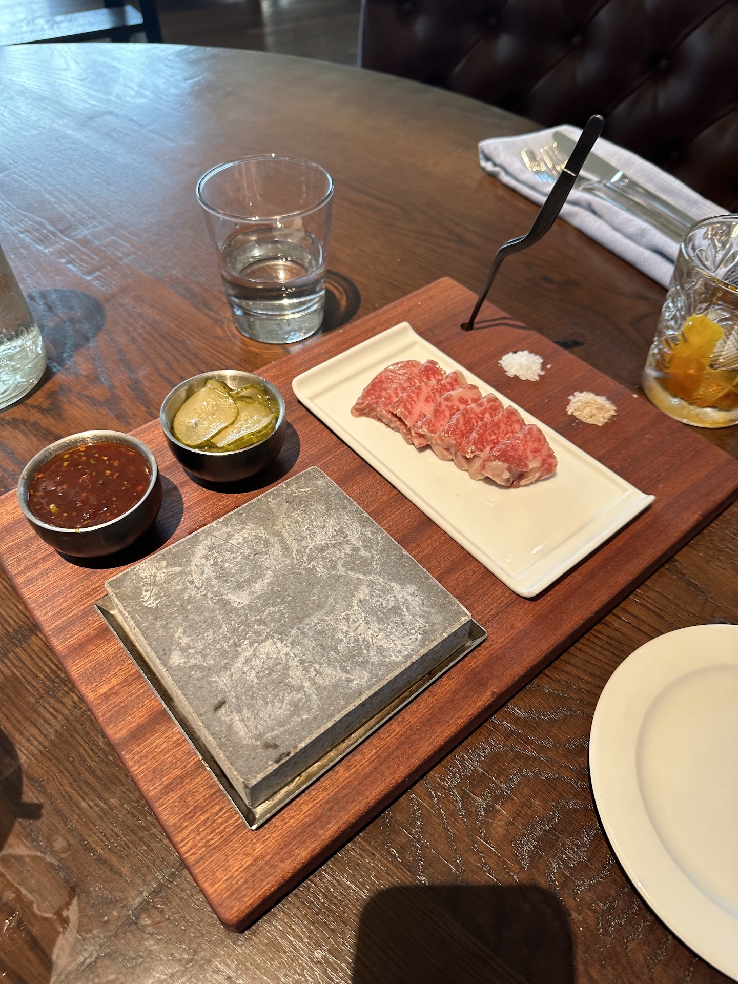 Hot stone Wagyu - worth it for the experience alone. This was a fun appetizer where we cooked our own Wagyu strips on a hot stone brought to the table. Not something we have ever seen at a restaurant. The Wagyu was delicious. Tips for this one - salt the meat first before searing. The spicy chili dipping sauce was good but a bit overpowering for such delicious meat. I preferred eating the meat without the sauce though might change my mind if there was a different sauce. Overall I highly recommend this unique appetizer for the experience and meat quality.