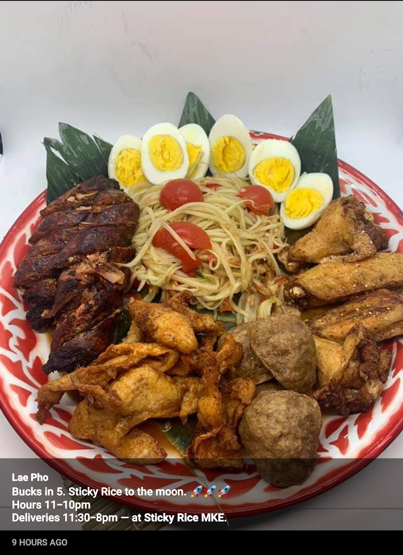 I found Sticky Rice MKE from their Facebook page, and the attached photo from their FB page posted today, 06.25.2021. It's not officially on their menu yet, but it's just their existing food on their menu into one platter, hence it's called the "Papaya Platter". I've had several platter dishes like this from other Laos/Thai restaurant from California to Minnesota to Wisconsin, and some are good/some are decent/some are bad... But Sticky Rice MKE soon-to-be new addition to the menu was a disappointment as a first time order/customer.