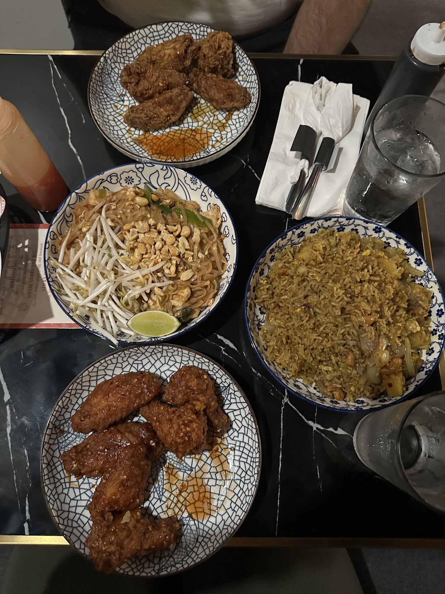 Read moreIncredibly tasty food, every single dish I have tried in my first two visits is delicious. I highly recommend the Pad Kee Mao (drunken noodles), phenomenally wide, yet thin noodles that satisfy on a deep comfort food level. Soft and chewy, the noodles sometimes stack so be sure and peel them apart for maximum surface area. Enough on the noodles already! (I may have a noodle addiction problem) Also lots of veggies, and whatever protein you prefer, cooked to tender perfection. The Tom Yum and Tom Kha soups are fantastic, and the chicken satay are lip smacking good. In fact it was so good that on my second visit I ordered all the same stuff with slight changes to protein and heat level. As for that, there are six options, four animal: chicken, beef, shrimp, and most unusually... squid. For a meatless dish two: tofu or veggie (which I assume means extra veggies). I had the tofu in soup and it was lightly fried, so chewy outside and soft yet firm inside. Heat levels: Mild is mild with a tiny backbite. Medium is hot, it builds as you eat. Hot is stop for a minute in between bites so your mouth does not spontaneously combust. And I really do not need to know what Extra Hot is. Of course these are all subjective, dabble at your own risk. I hear good things about the Tod Mun Pla, Nam Khao, and Lad Nah so I will update after...