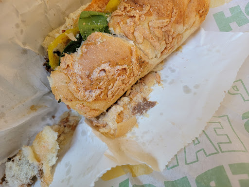 Old review: Earphone lady couldn't hear that I wanted black forest ham and so gave me steak. The bread is dusty today, touch it and it crumbles (photo showing bread dust). I'm not returning...