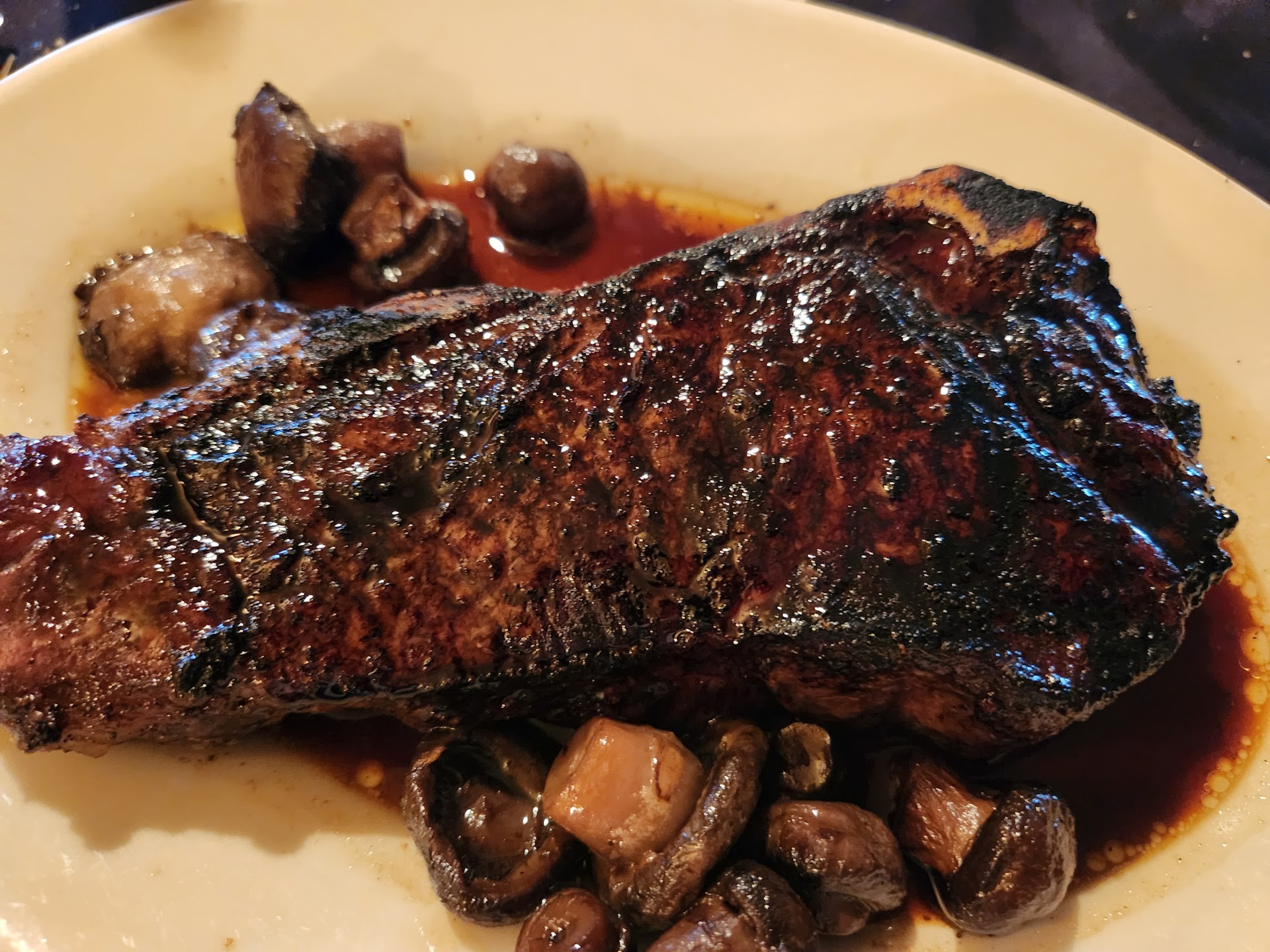 Read moreI have visited many steakhouses, and this is not at the top of my list. The King Prime Rib for $65 is not worth the money. Was it tender? Yes the Prime rib is extremely tender, but the texture was weird and there was a ton of seasoning on it that took all the beef flavor away. The thing that's weird is that it wasn't salty, so as to what seasonings they use I don't know, but there was a huge lack of beef flavor. The char was more of a darkened edge that a crispy char. My wife ordered a Ribeye for $65 and that literally had an asparagus after taste! How, I don't know! Maybe they put some on the grill before cooking the ribeye. There was absolutely no beef flavor to the ribeye at all! I mean none! The calamari appetizer was delicious along with the Tuscan soup. The mozzarella in the sticks had some weird seasoning on it also. Also who serves bread uncut into slices? We had to cut the bread ourselves which left crispy bread crust all over the table, it was a mess! My son had the chicken Alfredo and said it was pretty good, I didn't try it. The atmosphere is awesome, dark decorative and welcoming! The staff are super nice and attentive! We will not be returning. I would eat Texas Roadhouse before these steaks. If I want a $65 steak I will go to Jackson Grill and get a delicious well cooked...
