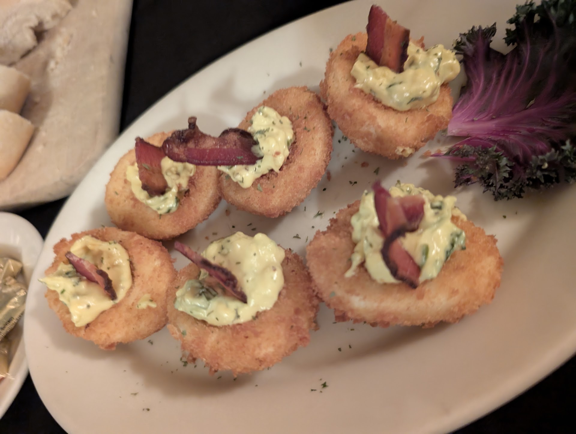 For dinner, our server was Debbie. If she's working, ask for Debbie, she's amazing. You're started off with the classic supper club spread, a HOT loaf of sourdough bread, and a COLD relish tray. The reason I emphasize hot and cold because it was actually impressive how the temperature of their product was PERFECT. I could tell their food wasn't sitting out on a counter or under a heat lamp. Bravo. I had their french onion soup, which was outstanding. We both ordered fillets, one medium, one medium rare. Both perfect. Steaks come with soup/salad and potato choice, which is nice.