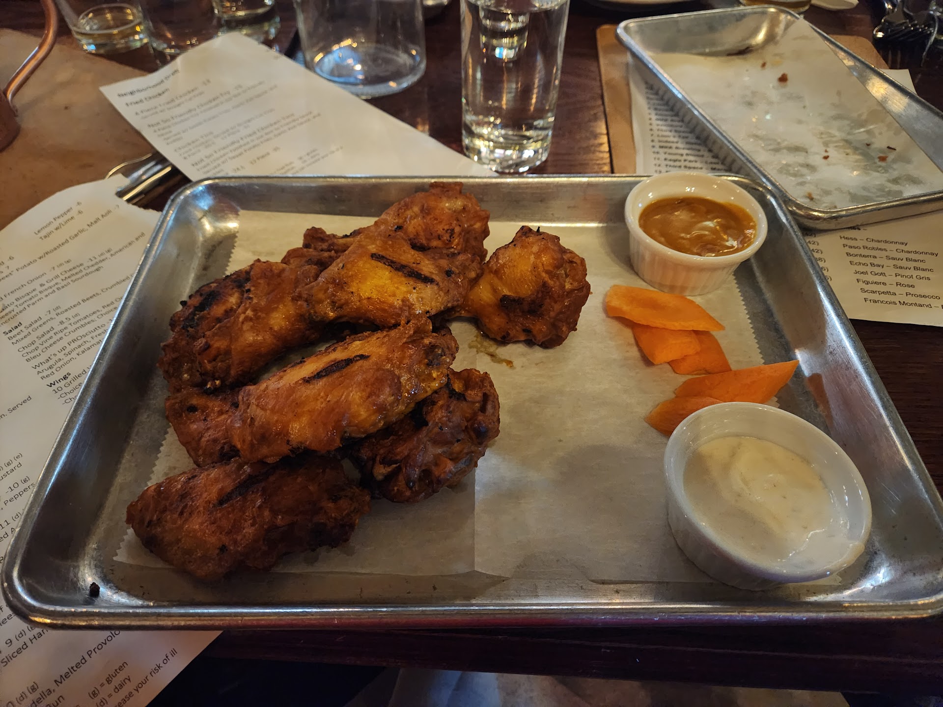 The grilled wings are where it's at though. You get 10 wings with 1 sauce per order - they have about 10 sauces to choose from. And the wings are huge! I had the carolina sauce which had a great flavor and wasn't overly saucy. Comes served with carrots, ranch, and a mustard sauce.