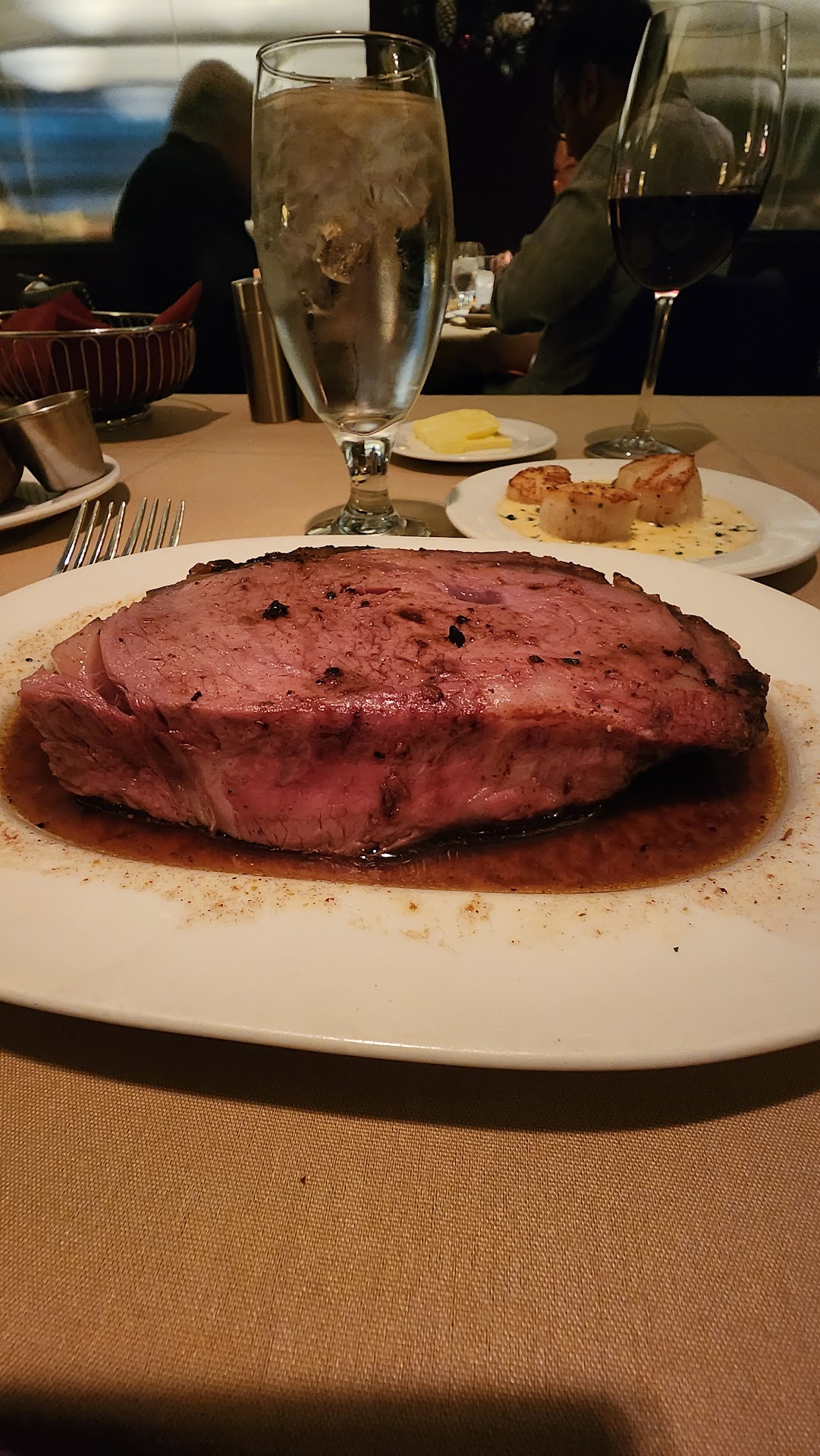 Main Course: Lobster: one of the lobsters were black like they were burned? Looked very unappetizing so we just ate the other one. Filets: both our filets were WAY over cooked. I like some pink but usually it’s on the rare side so we ordered medium well (I know) and it was SO dry there was no flavor other than char. (This was cooked far past well done) Scallops: they were good and moist (ha), my wife liked these, me not so much.