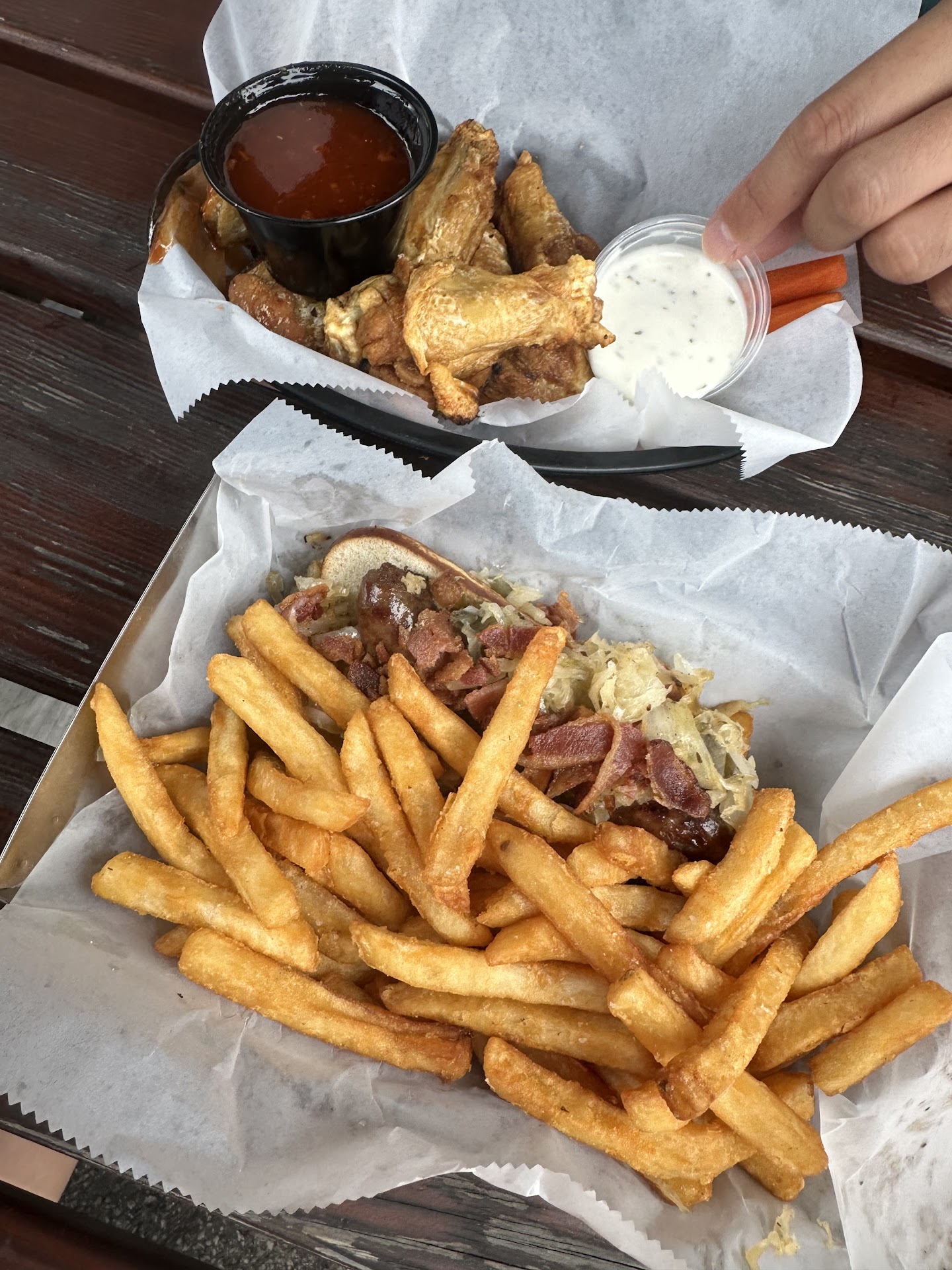 Read moreWas honestly pretty disappointed all around, unfortunately. Our server was very rude and we were nothing but respectful to him. He seemed like he was in a total rush the whole time. We tried their wings and a burger and it was very overpriced for the quality we received. While we were eating our wings, he already closed our tab (which was fine because we were technically not going to order anything anymore), but he wanted me to pay right away while I was eating. I clicked "no receipt" by accident and then I apologized and asked him if I could actually get a receipt. I asked because we had a coupon for a free drink that we gave him at the beginning and the tab just seemed very overpriced. When I asked for a receipt, he made it seem like it was a huge inconvenience. After he slammed the receipt on our table, I thanked him and he just walked away without saying anything else. We were, in fact, charged for the second drink, but we just left because I did not want to inconvenience him even more. He did mention that it was his first day, which is why we were being so patient and understanding with his behavior, but whether you are new or not, there is no excuse to act that way. I'm throwing my second drink coupon away because I am NOT going...