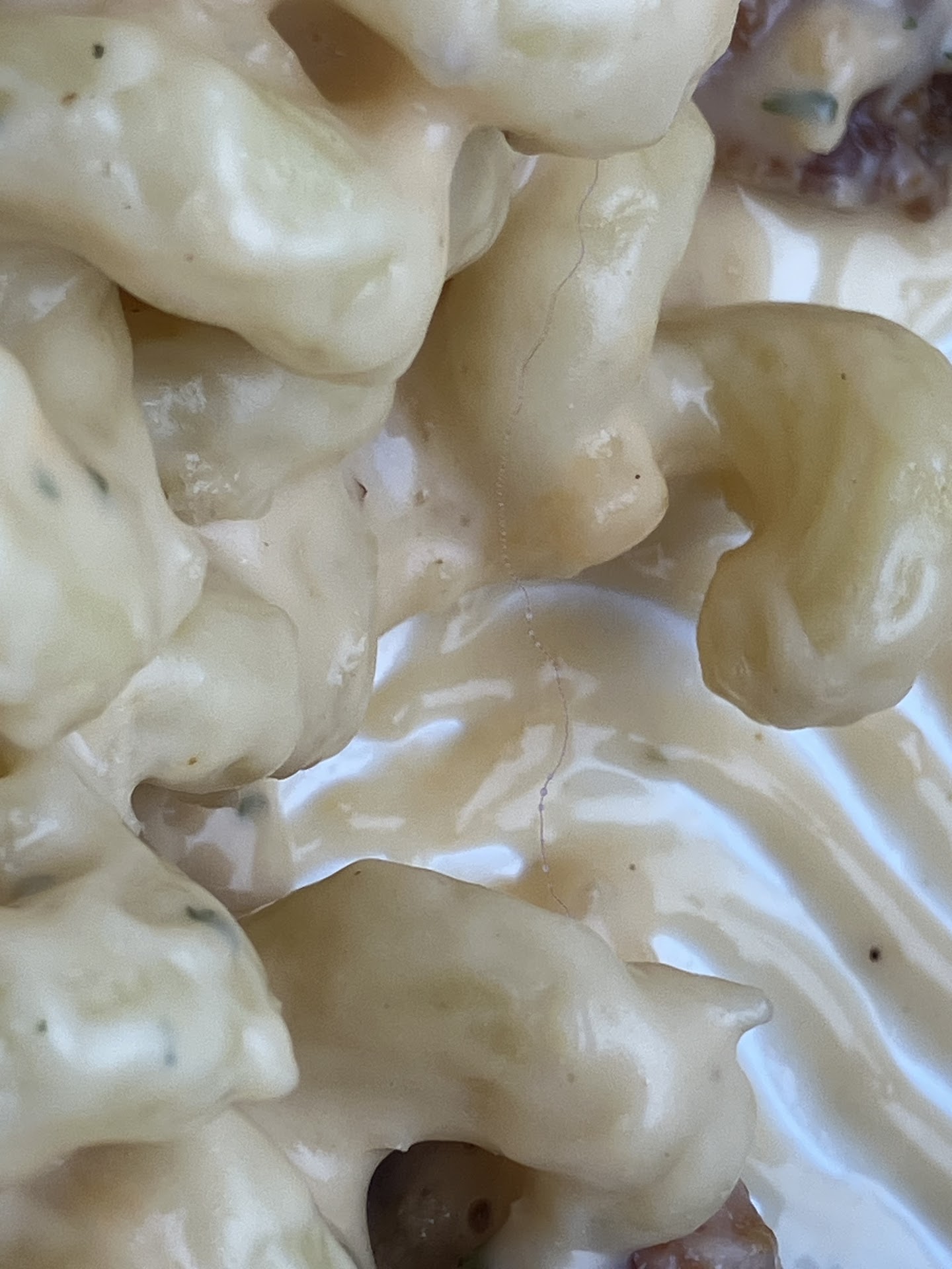 Read moreI ordered a bacon mac n cheese, when I had the first night the sauce tasted extremely artificial and was very salty. But i paid 16 dollars for my food and I was going to eat it anyway. After a few bites I found what appeared to be a hair or fiber from clothes. I decided to talk to the man working there, I showed him what I found and he proceeded to pluck it out of my food with his bare hands. Then he told me it was just a piece of dried cheese because it âdisintegratedâ in his hand while in reality he had just dropped the piece. He did not offer to remake or refund when I brought up the initial concern, but even then prevented me from eating the rest by touching it with his unclean hands. This wasnât an isolated issue because my friend had purchased a bowl of soup this same week from this cart and found a hair as well. Zoom in to see the...
