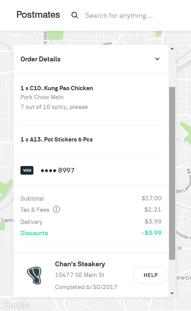 Read moreOrdered through Postmates:
