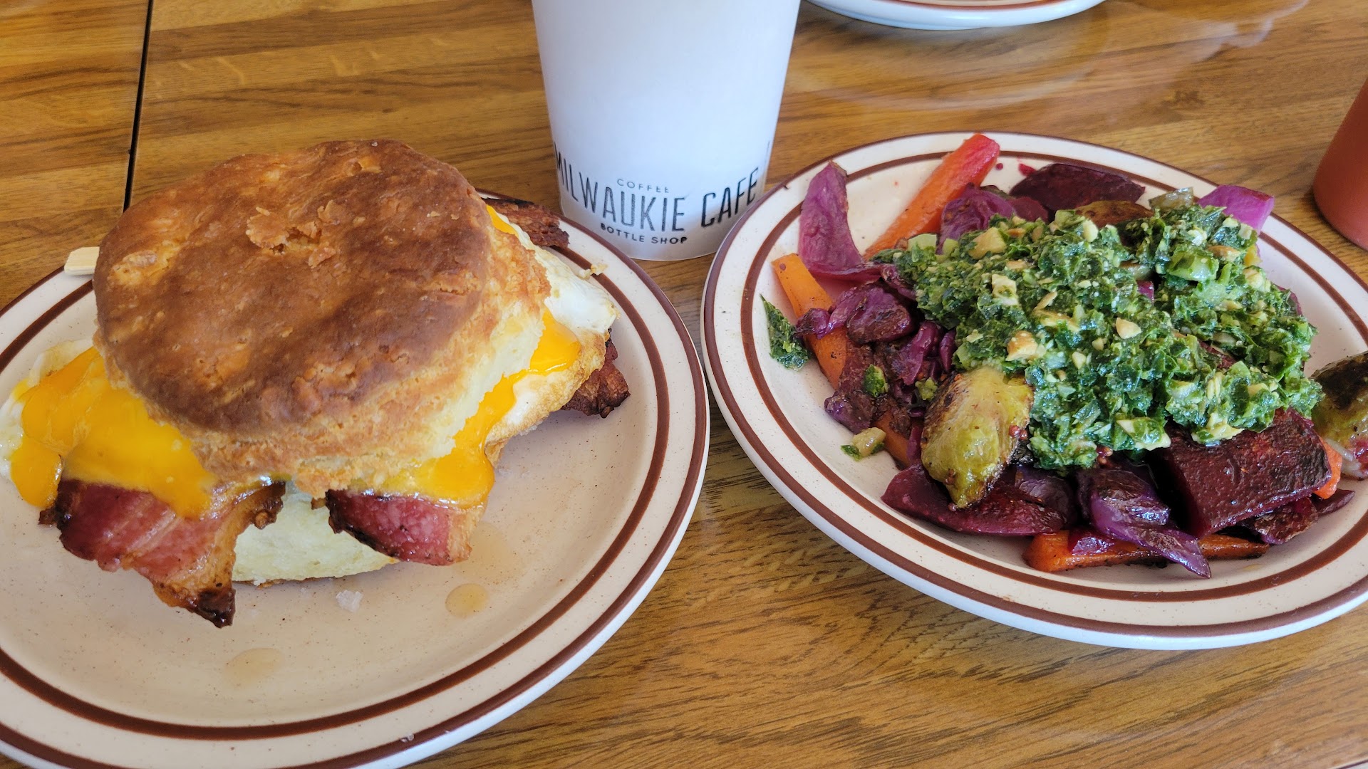 Read more5 stars. Up from 4. Lived in neighborhood from 1998 - 2022 and we still make this cafe a regular stop even now that we live in Oregon City and travel. This is a must stop. Picture added is a Biscuit with bacon & egg, and side of veggies and pesto = $15.5 = Delicious!