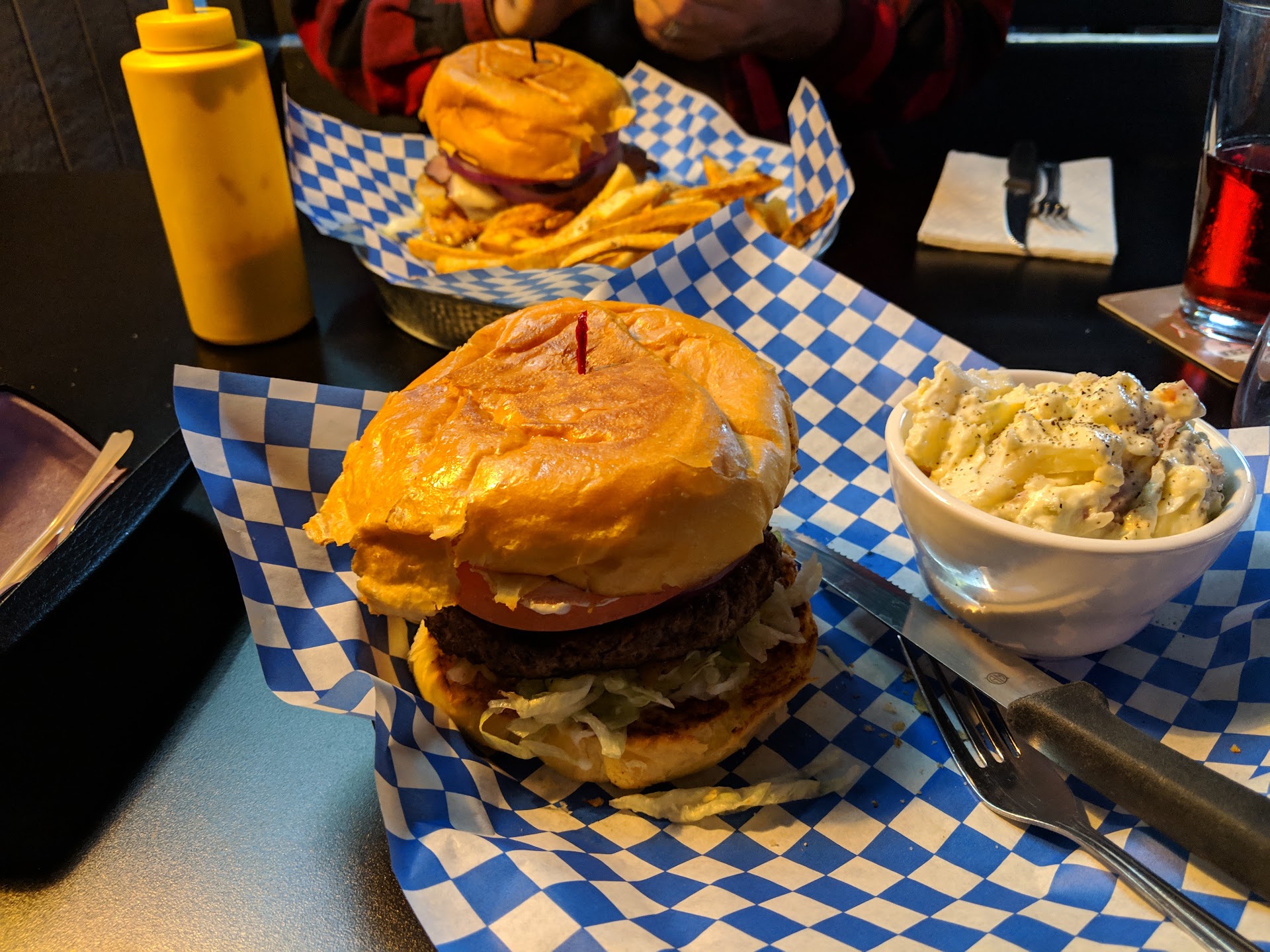 Read moreOkay, well it was my first time in there because i just moved into the area! I must, say it is a very nice atmosphere with a very friendly and welcoming staff! I drank a beer while I waited for food to be made to go which was quick! I had the cowboy burger and ordered one my son as well. It is really hard to impress me with a burger and fries but color me surprised!! The burgers were AMAZING and the fries were just as impressive! I really have not had a burger and fries that good since I lived in Texas. Delicious!!! In addition, it took me all night to eat it! Pretty darn big! I look forward to going again! Great sports bar.. Tv right at the bar with big...