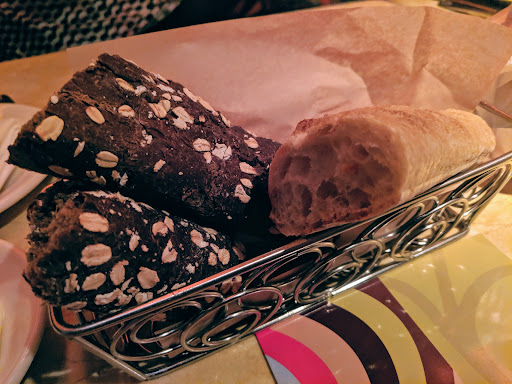 After being resituated to a table that was suitable, it took another 12 minutes for being addressed by our food service person, followed by another 5 minutes for water and bread, and then followed by a few more minutes to get our drinks and dinner order in.