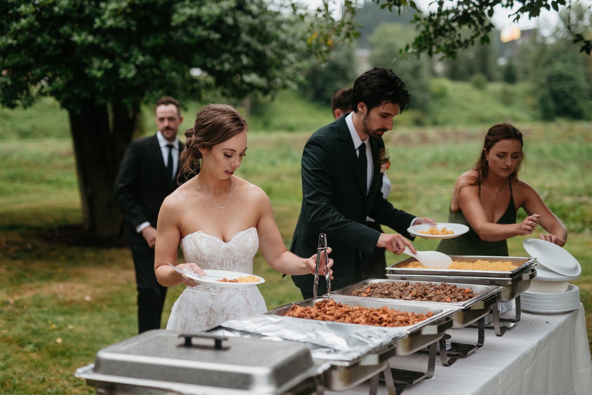 Once the rain stopped, everyone got to enjoy the food. Our number #1 most received compliment at our wedding was how incredible the food was (especially the lamb and baba ganoush) To say we were satisfied is an understatement; we were entirely grateful and fortunate to have Greek Gods Gyro as our caterer. We cannot recommend them enough, to anyone considering caterers, look no further. Certainly their food cart is a must visit, must try, but as a caterer, you will be hard-pressed to find anyone better or as hardworking as...