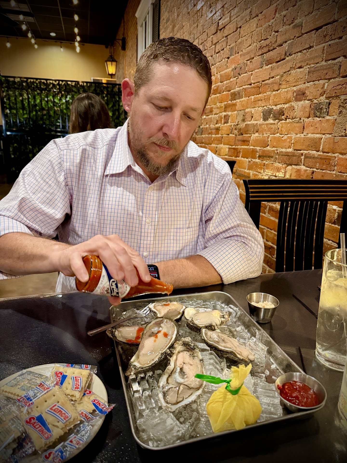 7pm Walk-in diners on a Thursday and asked if we had reservations, then had to wait for a table. Took awhile to get our appetizer and entree ordered. The prices are kinda high. They have a salad bar that you fix yourself. Side salad plates are very small saucers. Ordered the crawfish cornbread appetizer which was the best thing we had all night, hardly any crawfish stuffing in it though, sweet cornbread mix btw for those who donât like sweet cornbread. Ordered the soft shell crab, waitress came back over and asked if I want the crawfish Ă©touffĂ©e or the blackened shrimp on it, I told her nothing on top to take away from the crab but she could put it on the side. She presented it to me as it came with my meal even tho I asked and mentioned to her that it didnât state that on the menu.(Iâm not sure if the other staff didnât push her to get me to add it). Come check time, I was charged extra for the blackened shrimp. I asked the waitress about it and she said must have been an issue on the computer and she would take it off. She comes back over with the receipt and saysâ well looks like the shrimp are on me tonightâ. I was leaving her a good tip before hand because of the situation but after that I was a little perturbed. I ended up leaving more so it would cover the loss she may encounter. Anyways, the blackened shrimp were the best part of my entree. The crab wasnât that good. Gritty and super fishy on the body. Green beans needed salt/seasoning. Wife had the ribeye and mashed potatoes. It was decent. Overall, wouldnât go back for the price and quality of the food. The atmosphere is nice, just a...