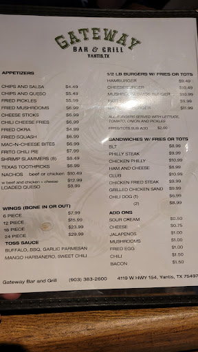 We went to try Gateway Bar and Grill in Yantis last night and were informed that we would need to eat on the bar side because of lack of servers. Right away, you could smell the cigarette smoke but, realizing it was a bar and grill decided to go ahead and try it out. The man leading us to the table was very nice and told us we would need to be patient. When the waitress came to take our drink order, we were friendly and speaking to her and her response was “I’m too busy to have a sense of humor right now” with a huge scowl on her face. It shocked me because I’ve never had a waiter speak to me so rudely. We still attempted to order our soft drinks and you could tell this young lady was very unhappy by the look on her face. We decided to just call it quits and try another restaurant. I completely understand that there is a lack of servers available right now, but that’s no excuse for a server to be rude to a patron. We were ready to be understanding and patient, but were not ready for rudeness. We left and went to Neon Moon right down the road and had excellent food and service!! Needless to say, I would not recommend Gateway Bar and Grill unless you’re just interested in drinks and...
