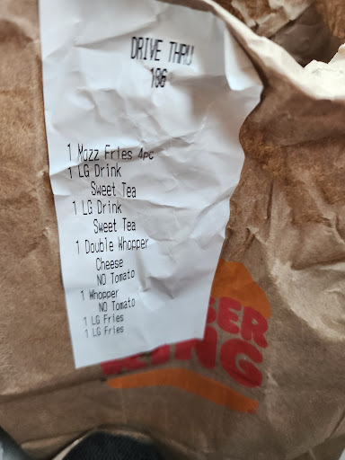 Read moreI got to BK at 10:07 a.m. to purchase breakfast. I got to the window and there was no breakfast menu. When I asked where the menu was, I was treated as though I bothered them. After being short with me, I ordered breakfast and asked for 3 sugars and creamer for my coffee. I ordered the French toast stix meal as they were out of biscuits for the breakfast platter and wouldn't substitute anything. I pull to the window. Was handed my coffee and asked to pull forward. About 3 minutes later she brought my food out. I went to get sugar and creamer out for coffee, none in the bag, syrup, none, ketchup for hashbrowns. ...none. I only live 2 minutes from this store. The hashbrowns were cold. The others were warm. Overall, way to go on making a customer feel as though they were a bother and obviously not listening to...