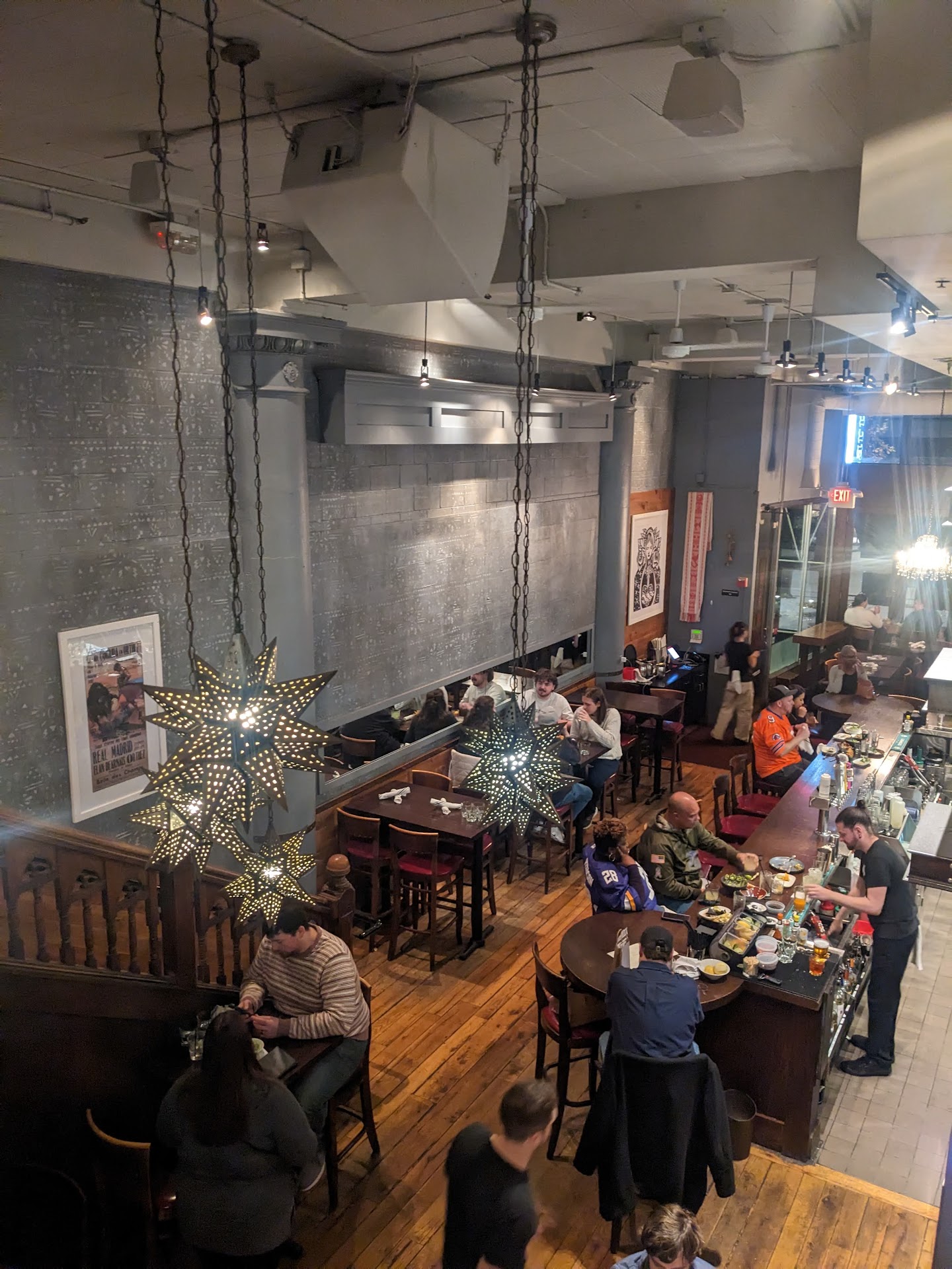 The Bad: While well designed, the small footprint of the building makes for uncomfortable, cramped quarters and it gets downright UGLY on a busy Saturday night. Busy hours should be avoided if you don't like sitting at the bar and getting elbowed by waiters and customers clawing through the small passageways.