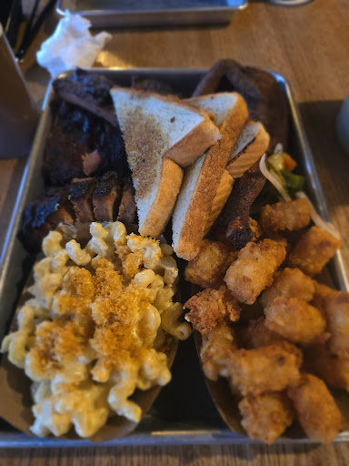 Read moreI heard good things about this place and thought I'd give it a try. I love barbeque food and it is pretty tough to find a good place around here. I am being pretty generous about giving a two star. The atmosphere was really nice. They did a really good job about renovating this from a dive bar. It definitely fits the area and very hip and new. The atmosphere fit the theme for a barbeque place. The service was decent and friendly, but kind of slow for a place that was not that busy. We ordered and the food came out in about five minutes or so. I was surprised at how fast the food came out, but also curious as to why it came out so quick. We ordered the half and half. Half chicken and half ribs. The chicken had a dry run and had decent flavor, but the chicken was dry and did not have enough flavor. The ribs had decent flavor, but again it was dry. We waited for the rest of our party to show up and we ordered another round of ribs. The second order of ribs were less dry and same flavor. It was good, but did not fall off the bone. We ordered a few different sides with each order. We had the creamy coleslaw which was a bust. It lacked flavor and was not very creamy in my opinion. Other sides were the JoJo chips, which was a hit. That was my favorite thing we ordered. The Minnesota white, ranch, was homemade, but really there was nothing to scream about. It just tasted like watery ranch. Couple of the people ordered brisket. The first order was very dry and the second looked more juicy. I did not eat it, but could tell by the looks of it. I would not recommend coming here and would not come back. Sorry, I was very...