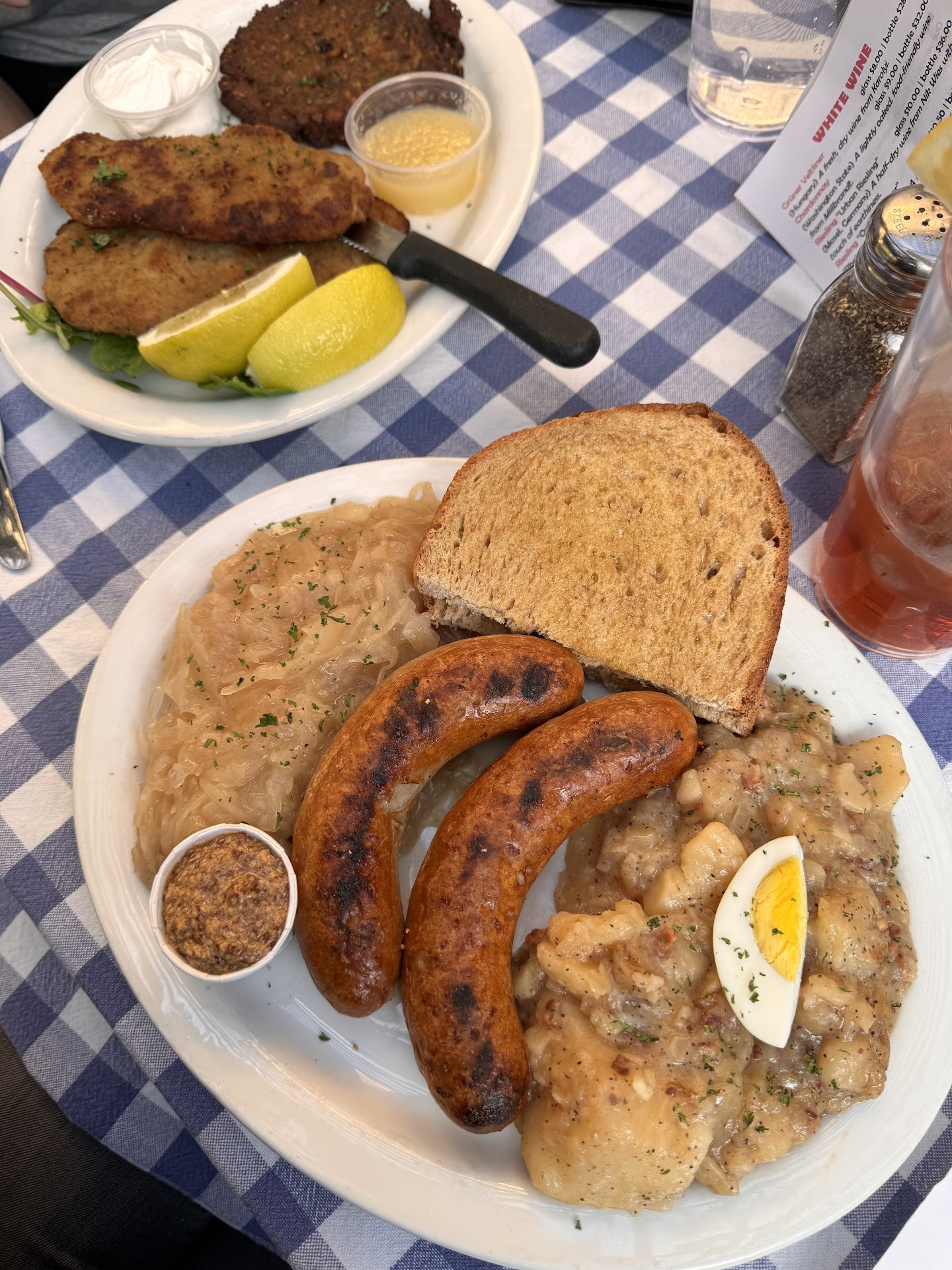 We also tried the pork schnitzel, which left much to be desired. The portion was small, and it was fried in butter rather than the traditional lard, which made the crust less distinct and flavorful. A good schnitzel should have a crisp crust that separates slightly from the tender, juicy meat, but this one lacked both texture and taste.