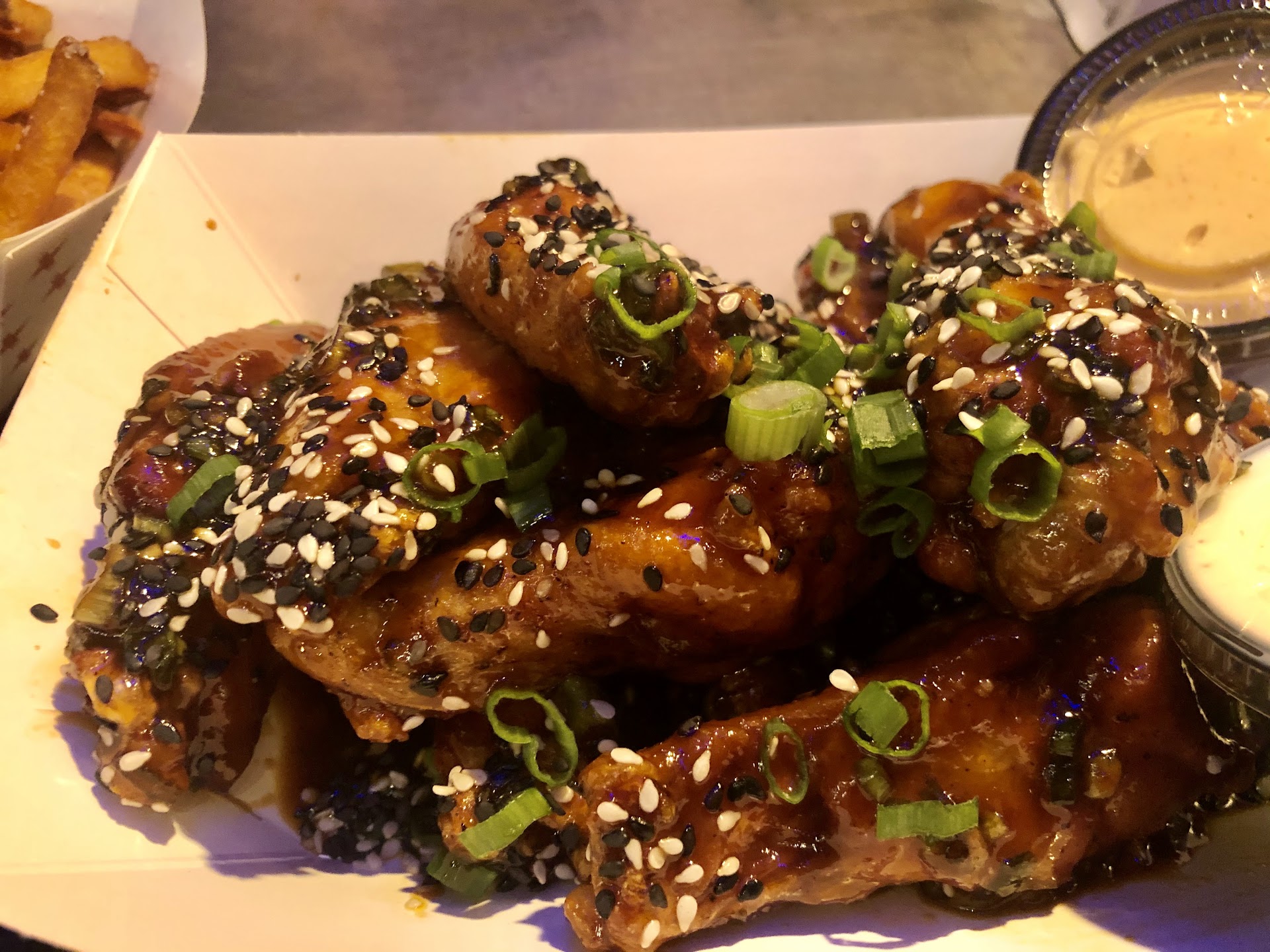 Read moreOrdering is on your phone. It’s pretty easy and self explanatory but I have a few suggestions. First of all, I couldn’t find anywhere to add extra sauce on the side with my wings. I always need extra sauce no matter where I’m at. I eventually found a whole “sauces” category on their menu but it wasn’t until after I’d eaten all my food and was looking for dessert…. Which they don’t have any of, btw. I suggest adding an “extra sauce” option in the actual order menu of the food item. I also suggest just adding an “additional notes” section at the bottom of each order where I can request a swap or special request I may not see on your menu. For example, the other issue I ran into was that when ordering the chicken sandwich I had, it comes with bread and butter pickles, which you can remove…. But there was no option for me to then add regular dill pickles, extra aoli it comes with (which i also needed), etc.