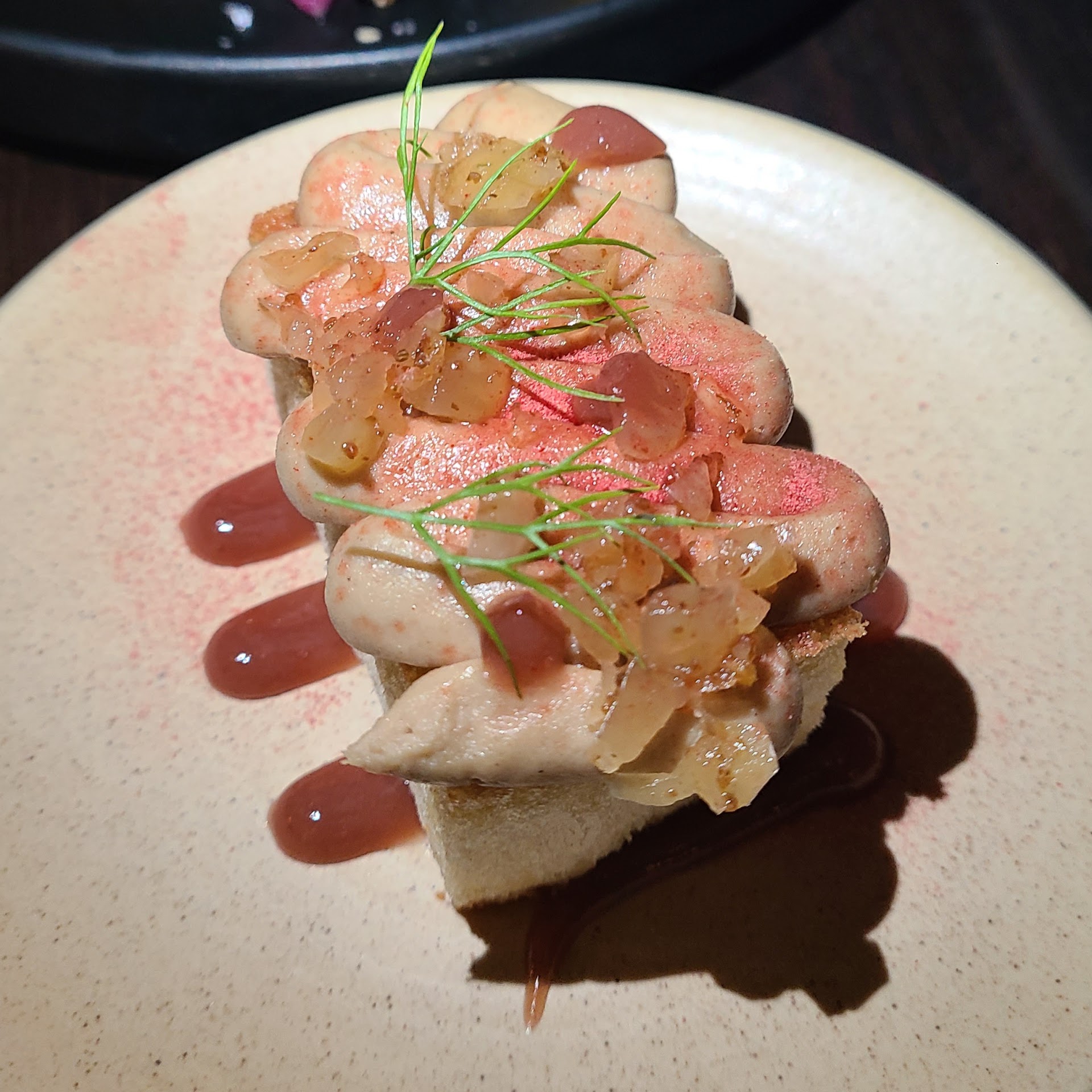 -the duck-fat shortbread; beautifully crumbly yet very light. Possibly one of the best short breads I have ever had, especially texture-wise (and I lived in Britain 4 years!) -The chicken live mousse eclair; it is a