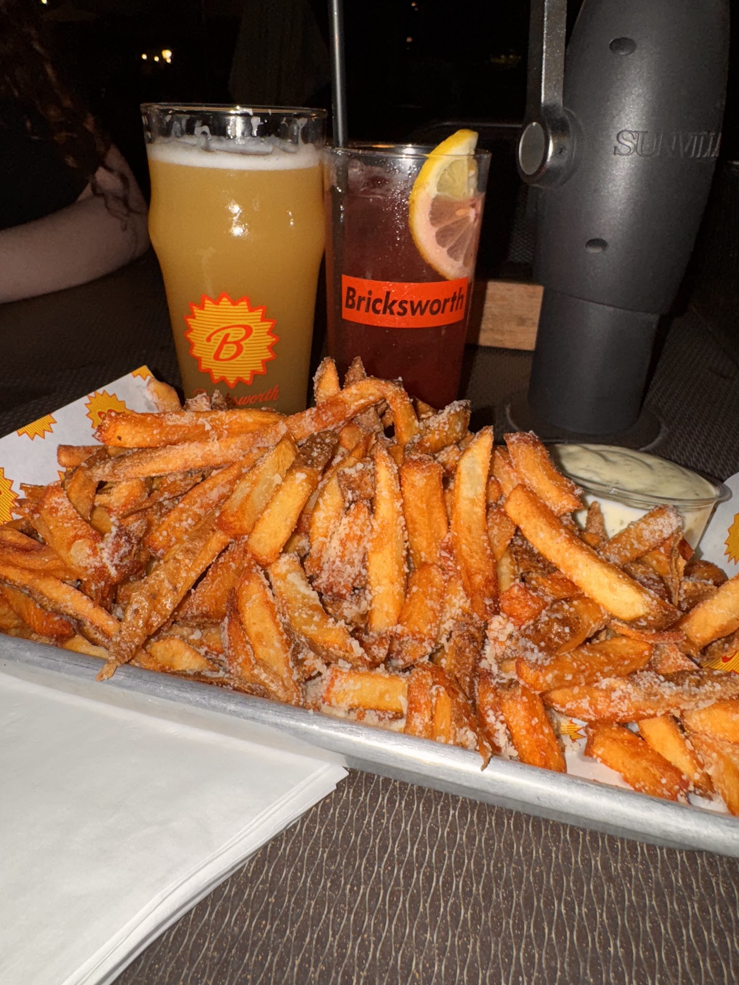 Read moreTruly loved the drinks, I had the 16oz Topanga tap beer and it was by far one of the smoothest beers I’ve had. I really enjoyed it and the price point was solid as well, I tried my friends drink, she ordered the space cadet and it was citrusy with a hit of boozy tequila for sure! We got their about and hour before they closed (maybe that was our mistake) but we ordered the Parmesan fries and they definitely felt soggy and not crispy at all and they are literally not salted apart from the Parmesan dusting. Which kind of sucked. They truffle aioli tasted more like a ranch to the both of us (it was good but it was more runny as opposed to creamy) and as soon as we ordered with the bartender it was less than 2 minutes they had the fries ready which I wonder if that added to the reason they lacked crispiness. I think the portion was perfect for the both of to share we even had some left that we weren’t able to finish. I loved the outdoor patio, it’s such a hidden gem that could be easily missed. I hope to try their food sometime soon, their taki & cool ranch dorito wings/tenders definitely caught my attention! Hope to also try their Naz Reid Hazy IPA tap beer. Will hopefully be back again sometime...