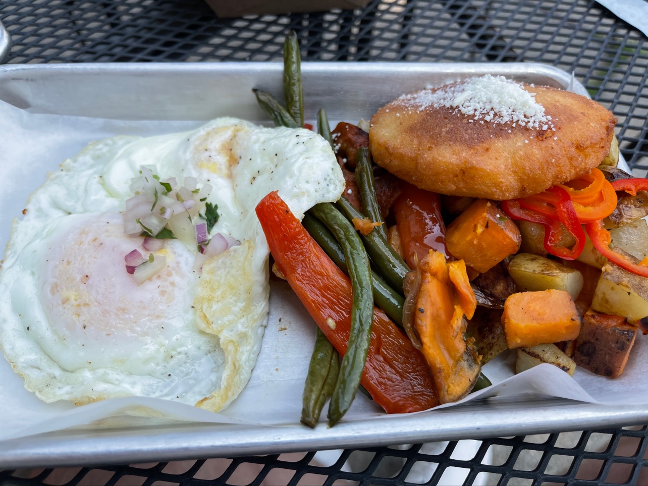 I always thought this place seemed really cute so my partner and I finally decided to try it and we could not have been more disappointed. First of all you order, pay and tip ahead of time at the counter where the minimum option is 20%. You have to find and fill your own water cups. Then the food came, which the portions were quite small for the price. The meat (we tried the chicken and pork) and it was so BLAND, no seasoning or spice at all. We also both got a rice side, one of them with beans. Most of the rice was rock hard and inedible, and it was cold. The only part of the food that was decent was the arepas, which I had to go find my own to go container for. I also had to reach over the counter to find my own napkins because no staff ever checked in or helped me when I came back up to the counter. Then at the end of the meal you have to bus your own food. Why is the minimum tip 20% for a place that you have to find your own napkins, water, order at the counter and then bus your own food? (Seriously cafe racer I'm asking)