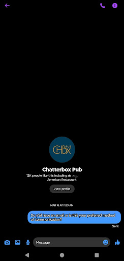 I went in with two other people slightly before 6pm on a Saturday night and asked for a table for six. There were spots available, but we still got stank eye from the staff ; everyone in the party independently noted. We told them five or six people were coming but we were brought three menus. We were immediately asked if we wanted to order drinks. We asked for a minute to look at the menu. A few minutes later we were asked again. We all ordered something. Before the drinks came we were asked if we were ready to order food. At this point we had 4/6 people. We asked for a minute. A few minutes later we were asked again. We decided to order. After we ordered, the fifth person arrived. They ordered separately. We were trying to play a board game and kept getting asked if we wanted to order anything else, if we were done. I literally hadn't taken a single bite of my meal before the waiter had asked TWICE if we were done and ready for the check. I was planning to order another drink. And eat some of the food. I ended up taking the whole meal to go. When I was signing my receipt, the waiter was literally standing at the table waiting, staring at me. Some people didn't arrive immediately, we had come to play board games, and we had left by 7:45. That's one hour and 45 minutes for five people to have drinks , order food, order dessert, pay and leave. Hardly excessive. This was the first time we had met as a group for what was intended to be an ongoing board game group. We probably would have gone there each week and all of us would purchase drinks and food each time. No way we're doing that now. I wanted to send an email to Chatterbox to let them know about this. I wanted to send an email, not write a scathing review, because I wasn't trying to seem like I was trying to defame them in order to get free shit. I just genuinely felt like they went from being "5 stars, one of my fave spots" to "I'm never going there again". Me and several other people in the group commented afterwards how upsetting the experience was. Unfortunately, I couldn't find an email anywhere. They did have other social media, however, so I sent them a message just asking if an email exists (or if I should use social media for communication). It's been over a week. I suspect I will never get one. Given that, here is my next best thing. Bitching...
