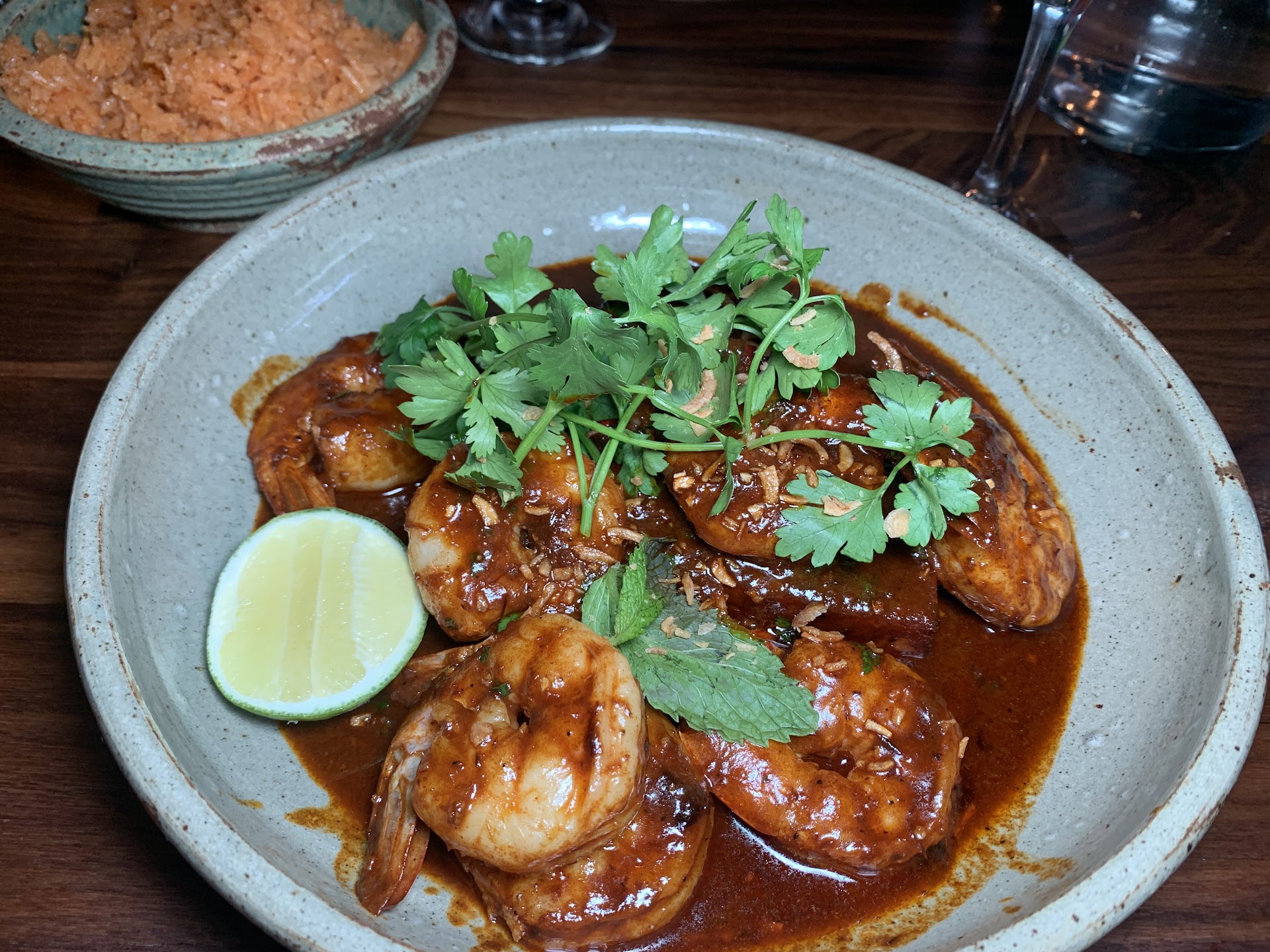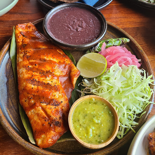 The food, on the other hand, was frankly mid - and quite expensive for the size, ingredients and quality. Again, this may be our fault for being there on a Sunday night. "Mex-tex" is unique on the surface, but the menu rarely strays too far from well-tread staples - and two weeks in, it's not keeping up with Colita or Oro, much less Petite León. The Mole was thin and mild; shrimp was meager. The fish tacos were the strongest entrant on the menu, with generous portions and an excellent balance of textures.