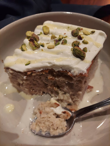 In terms of highlight, the best dish in my opinion was actually the pistachio tres leches. The milk was definitely there, and there was a good amount of pistachio flavor immersed into the cake. I thought that texturally it worked very well, too, because the softness of the cake provided a good contrast with the pistachio bits on the top. The esquites were great as well, with the tajin crema providing both a sense of creaminess and just a tiny bit of spice, and the manchego cheese giving flavor. The baja fish tacos contained a good amount of white fish and the chipotle crema added flavor. Personally I liked the fact that the brisket tacos had a good amount of smoked brisket meat, but my friend who ordered the dish didn't enjoy it because she didn't think the salsa was flavorful enough, which I could understand but disagreed with.