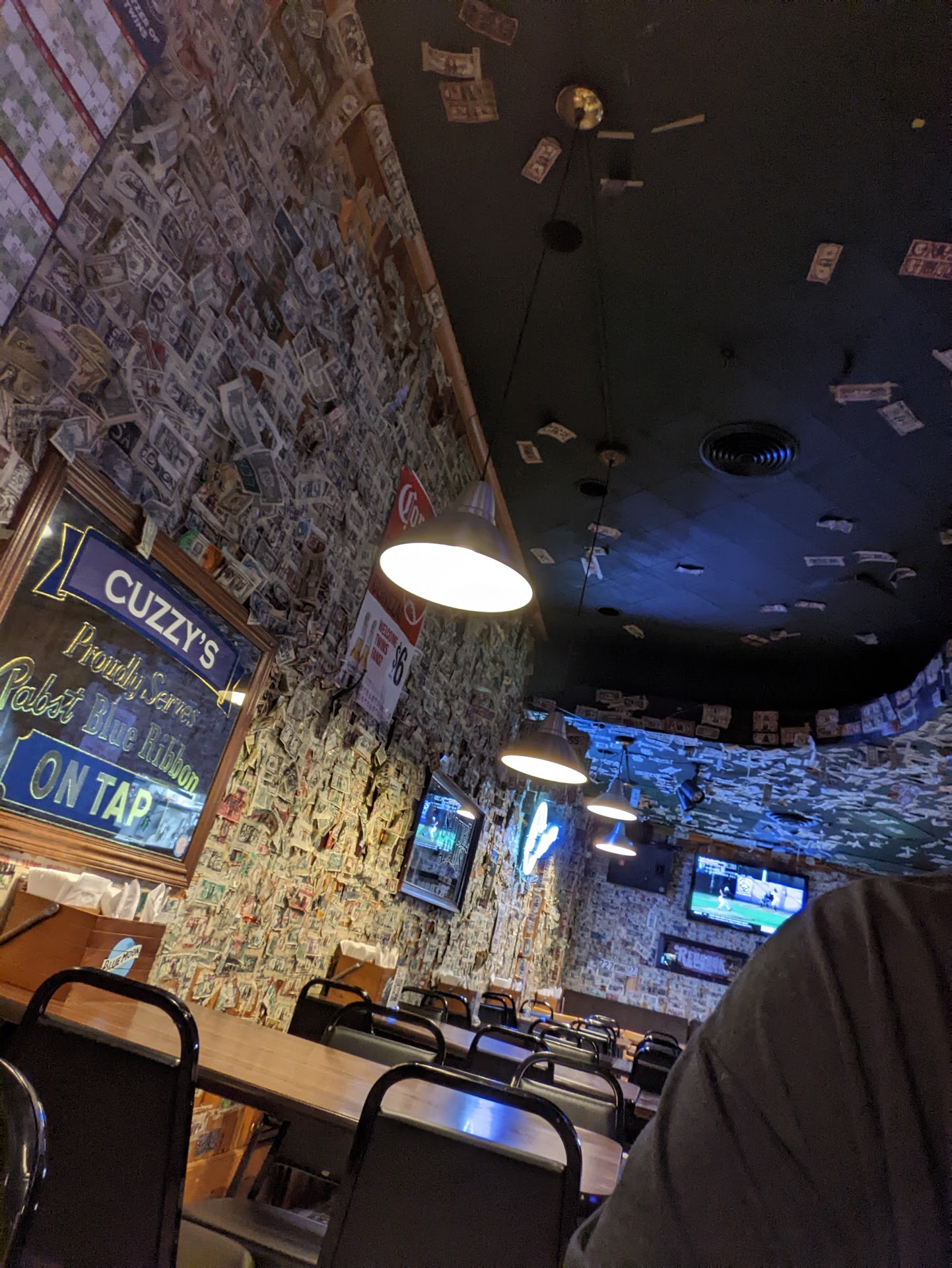 Just here to respond to Erin Gadient's post below mine (sorted by date) because as a patron of Cuzzys, I could tell this person was going to immediately try to slander the place for their own shortcomings. I was sitting about 10 feet away when Erin grabbed the bar light hanging from the ceiling and yanked on it, shining it around like she was a spotlight operator in other people's eyes. A bartender saw this (as well as the entire bar) and said, "Hey, put that down!" to which this person did not. She blankly and in a drunken stupor just stared into the abyss and after a few Mitch Mcconnell stroke seconds, put it down. This kind of stupidity happens at all dive bars. What doesn't happen at all dive bars is that the person who just had to be reprimanded like a kid with bad parents at daycare, just does the same thing about 1/2 hour later. The bartenders and bouncers were obviously not pleased and asked her to stop. Honestly, trying to yank a light off the ceiling is grounds for getting 86'd from the bar, but it seemed like the staff was being very lenient. After the second time she was yelled at, she threw what I'd like to call a drunk rich girl temper tantrum, to which everyone at the table around her basically disowned her. And now here we are, writing opposing Google reviews because apparently nobody has told this person that she can't do whatever she wants at all times before in her 35 years of life.