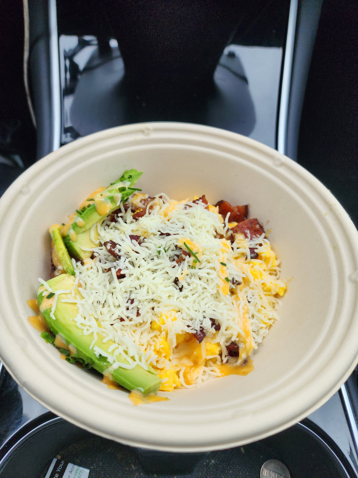 I ordered the Mr. Bacon bowl, and it did not disappoint. The eggs were fluffy and cooked just right, the bacon was crispy and savory, and the portion size was perfect — filling but not heavy. I added avocado and a couple of extra toppings, and the flavors all came together beautifully. Everything tasted fresh, like it was just prepped that morning, and it had that comforting, home-cooked feel but with a fast-casual speed. The best part? I was in and out in no time — super fast service without sacrificing quality.
