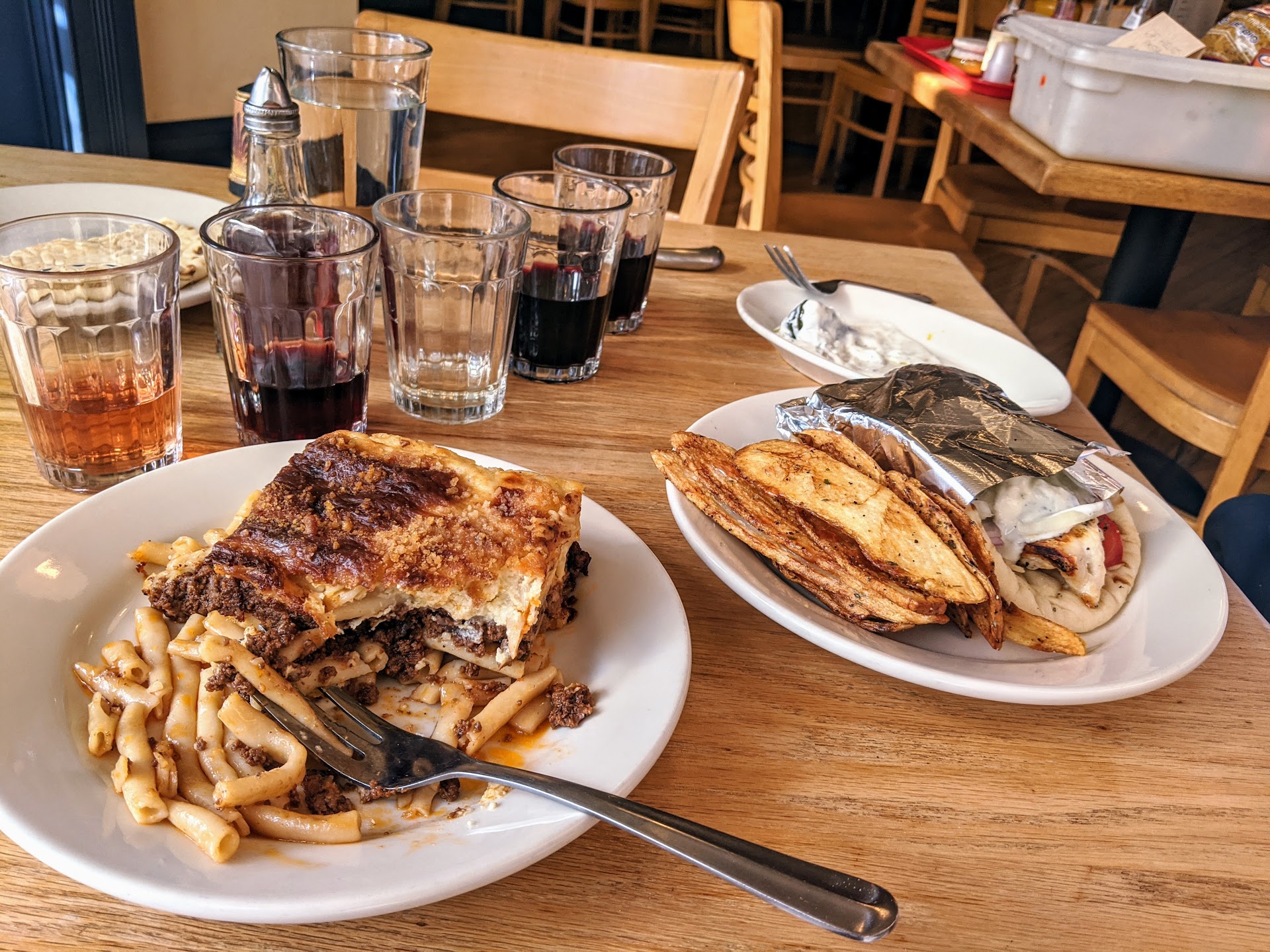 When the server passed through the dining area, we asked them for clarification on beverage items and they were helpful in describing what was available, but it was really slow to have to flag someone down to ask multiple questions about what the Greek items are (some listed with no English description). If ordering online still leaves you with so many questions you’d think there’d be some normal service or they’d have a counter at which to ask questions, anything really. By the time you find what you’re actually trying to order online, you have to add multiple required clarifications for each dish in one “order notes” section.
