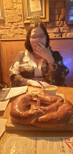 Read moreI drove from Wisconsin to surprise my friend for her 50th birthday here. However, our experience wasn't what we expected, since the reviews I read were so good. We entered a cool, trendy atmosphere and sat down. They weren't that busy, as it was 7:45pm on a Friday. It took 15 MINUTES for our server to acknowledge us, and he saw us come in. We ordered water to start, and I'm assuming the server thought we weren't good tippers because of that. Twenty minutes in, we finally got to order our drinks and the bavarian pretzel, which was AMAZING, by the way. After we ate some of the pretzel, a HALF AN HOUR LATER, our server finally came over to take our order. We ordered the Rueben Kugel and the Mac and Cheese with bratwurst. The rueben kegel was NOT good. It was like a dog food hush puppy, I do not recommend these! You get 5 dog food hush puppies for $15; for $3 a piece, you'd think they'd be edible. I even brought them home for my partner and he didn't like them either. The mac was good and the bratwurst was INCREDIBLE! All in all, we weren't impressed with the service. Apparently, watching the TV and talking with his coworkers is more important to the server, than taking care of his table. I am normally a 30% tipper, and I tipped him 12%. It's a treat for us to go to the "big city" and experience the dining, and we were very disappointed. I gave 3 stars for the food because of the pretzel, and if I could've, I would give zero stars for...
