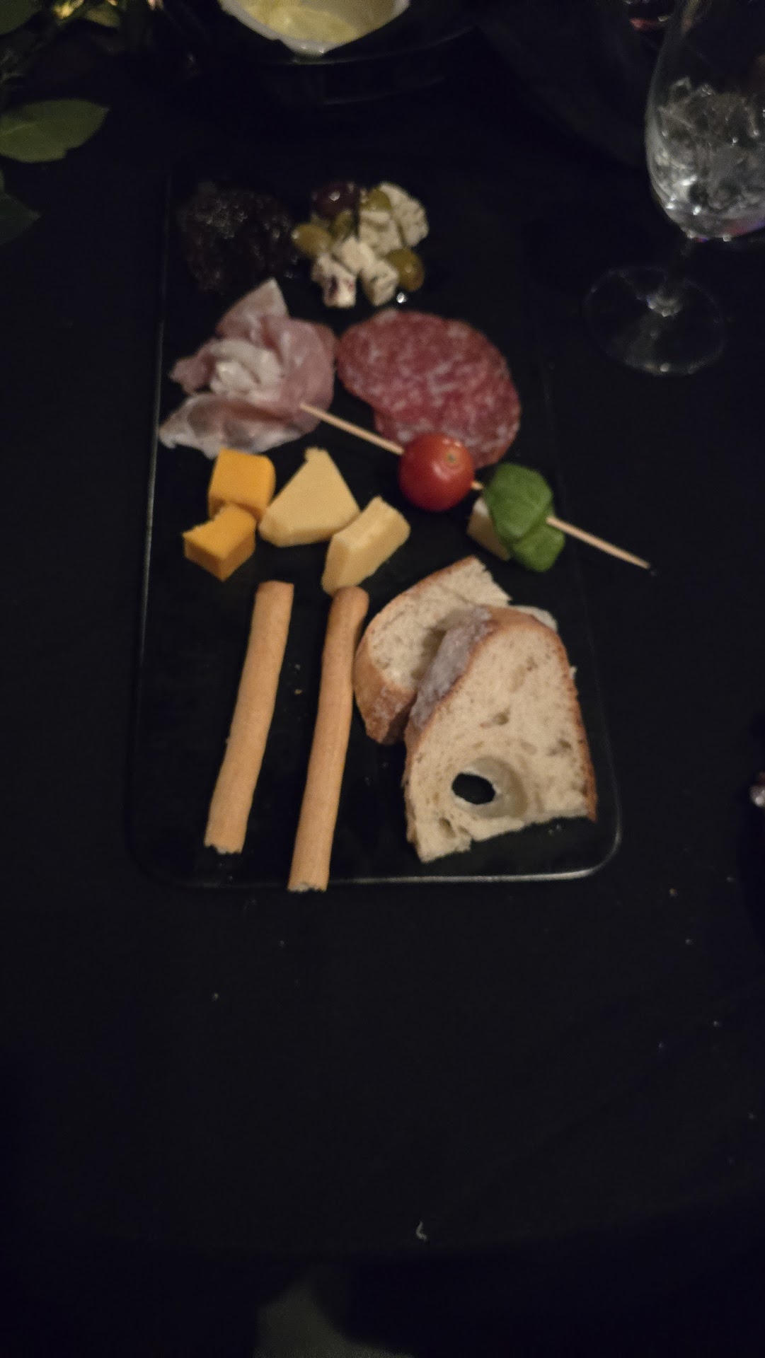 When someone finally came back to check on us, we asked if a food menu was available and were initially told no. Later, a staff member returned and mentioned that a charcuterie board was an option. However, he didn’t have pricing information and had to leave to find out. When he returned, he showed us a picture with two size options, and we ordered the smaller one. Unfortunately, it took over 20 minutes to arrive—surprisingly long for something that typically takes just a few minutes to prepare.