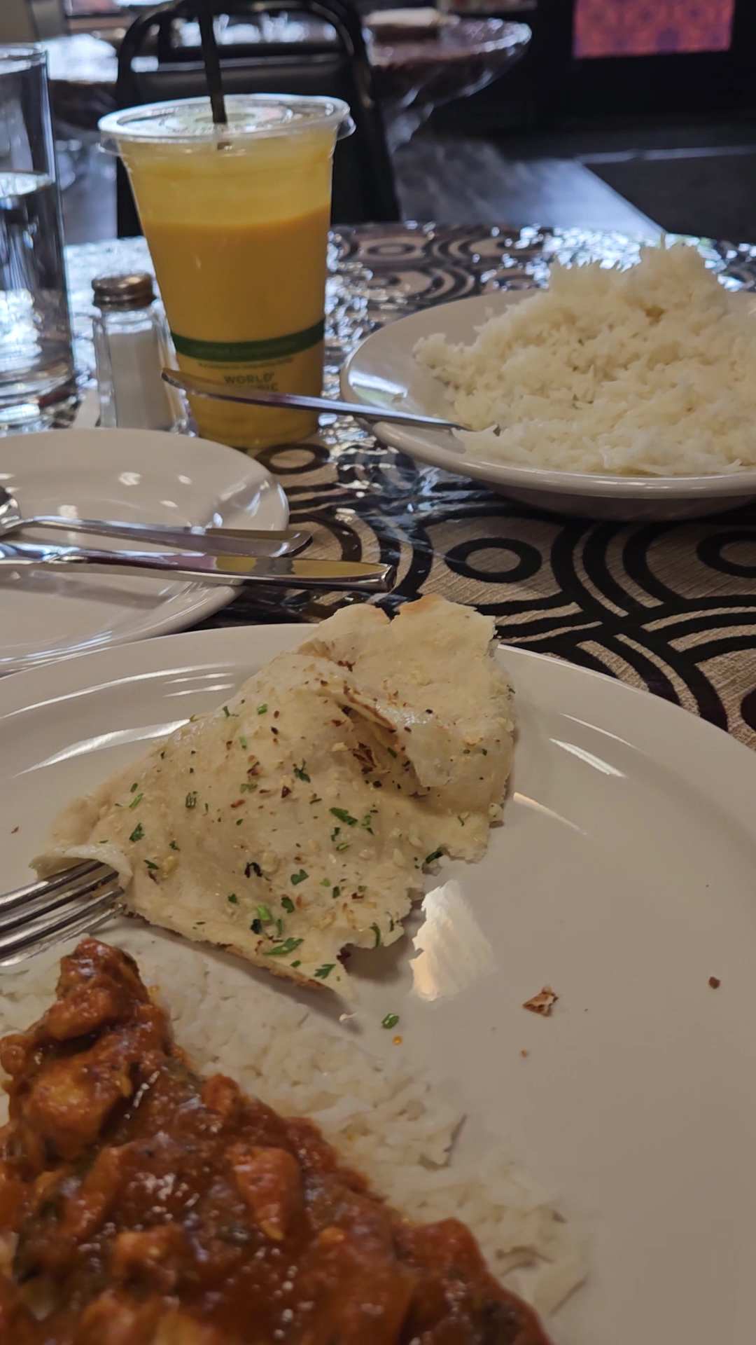 The food and service was amazing. Everyone in there was friendly, everything was clean, and all of the food smelled fantastic. Across everyone, we got the lamb samosa, chicken Tikka masala, chicken coconut curry, beef coconut curry, beef Rogan Josh, mango lassi, mango juice, and gulap jamun. Everything was delicious, came out fast and steaming hot, and was full of flavor without being too salty. Spice levels on the menu are definitely tuned to a Minnesotan's taste, if you want spicy you might have to go above a medium, but I'll know that for next time! The medium Tikka masala was still absolutely packed with flavor.