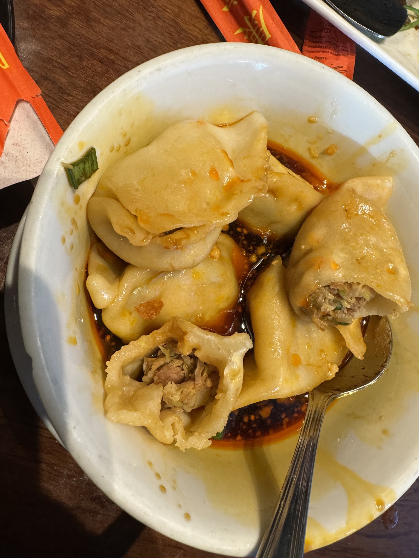 We ordered a few dishes, including Szechuan Dumplings, which were very tasty but not spicy in the slightest. The sauce they came in was sweet, which was surprising given their Szechuan name. Their wrappers were thick and soft but cold on the edges by the time they got to the table. We also ordered Xiao Long Bao, which unfortunately stuck together and to the steamer basket, so we lost the soup filling in four of the six that came with the order. They still had good flavor. The Chong Qing Chicken had the right level of Szechuan numbing spice. Overall, food was good but not excellent.