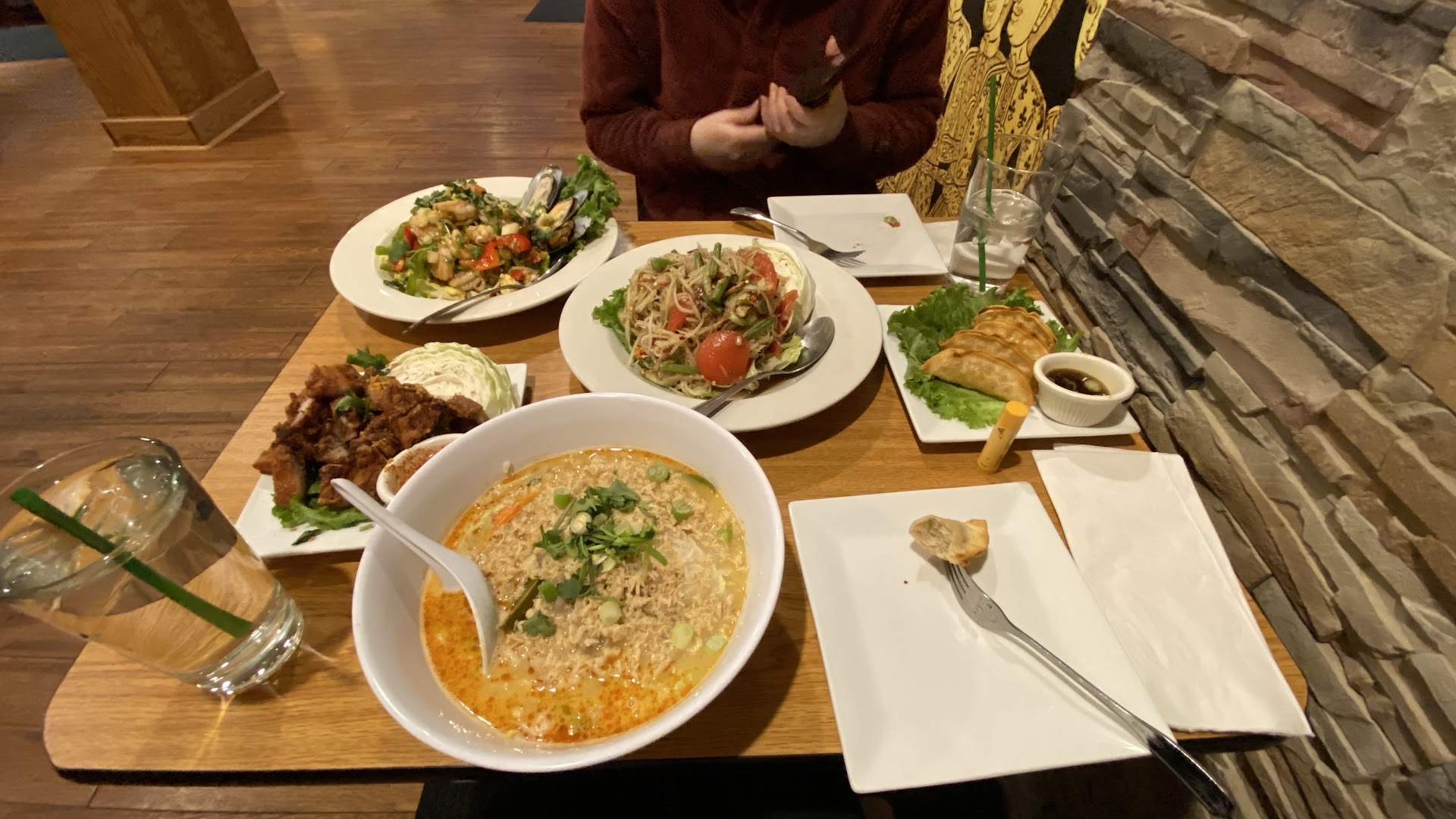 Way below par. Only had one waiter on and he was good for the level of customers that were eating however it was impossible for him to ring up to go orders, make sure everyone had water, silverware, napkins ect. All the while there were three other female employees that were only running food and occasionally bussing. Front of the house operations were horrible. I had to get up two times to get what I wanted and ordered. Now for the food. It was alright, I ordered everything with no spice because my girlfriend doesn't handle spicy food very well and everything was still very spicy, even for me, I like spicy food but I don't like it if it just creates pain instead of flavor. My biggest issue with the food however was when I got the papaya salad. I love sum tum so I had to try it here however there were crab shells in the salad, little pieces that were hard to pick out before eating and I did miss one and it broke my filling. Not happy. The guy that was waiting on everyone was busy and the only time it seemed as if anyone else was in any form of hurrying was when I was paying with cash and some random girl came and got it and put the tip in a tip jar to, most likely, split the tips evenly. I'm glad I witnessed this because I had suspicion that that's what was going to happen so I only left a $3 cash tip and when I walking out of the door I handed the guy that was busting his butt off an extra $20 and told him to Pocket it and not to share it with anyone and he was very greatful for it. My search for the best Thai restaurant will continue. Rip...