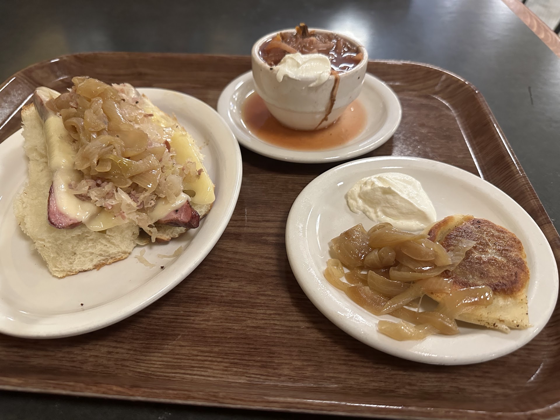 Meat Pierogi 4/5. Ordered with Sautéed Onions & Horseradish Sour Cream.