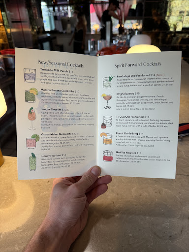 Advice for business: Service was very slow and I more planning could’ve went into the process. Maybe some more bartenders are needed but the space seemed like it could only fit two comfortably. Sweetness Level was so high. The jasmine tea was a level 2 which I’m assuming it’s 50% but it was super sweet and tasted like it was 100%. More thought could be put into the sweetness level. It was a little confusing finding the right door to go up. Idk if this is a speakeasy situation but maybe a sign on the door that says “L2” or something. Taste, I would recommend having taste testers coming in to taste the hot foods and other items. Getting a diverse group and taking their opinions and using it to better the business is important. I’m sorry but the shaved ice we got shocked me from how someone would be ok with selling that. I know it’s a new drink place but definitely having the servers give estimates of drinks would help ease the impatience of customers. Branding- is this supposed to be a sit drink and go situation or a sit and relax vibe? If the second one I would recommend having seats assigned to groups because I came in with 10 people and we were split into four groups. Allowing customers to choose their own seats that weren’t movable takes away from the lux vibes of the brand. Music Choice: I loved all the songs that played but it took away from the lux vibes and give it more of a come and go vibe. Again idk what the branding is aiming for but that’s how I felt.