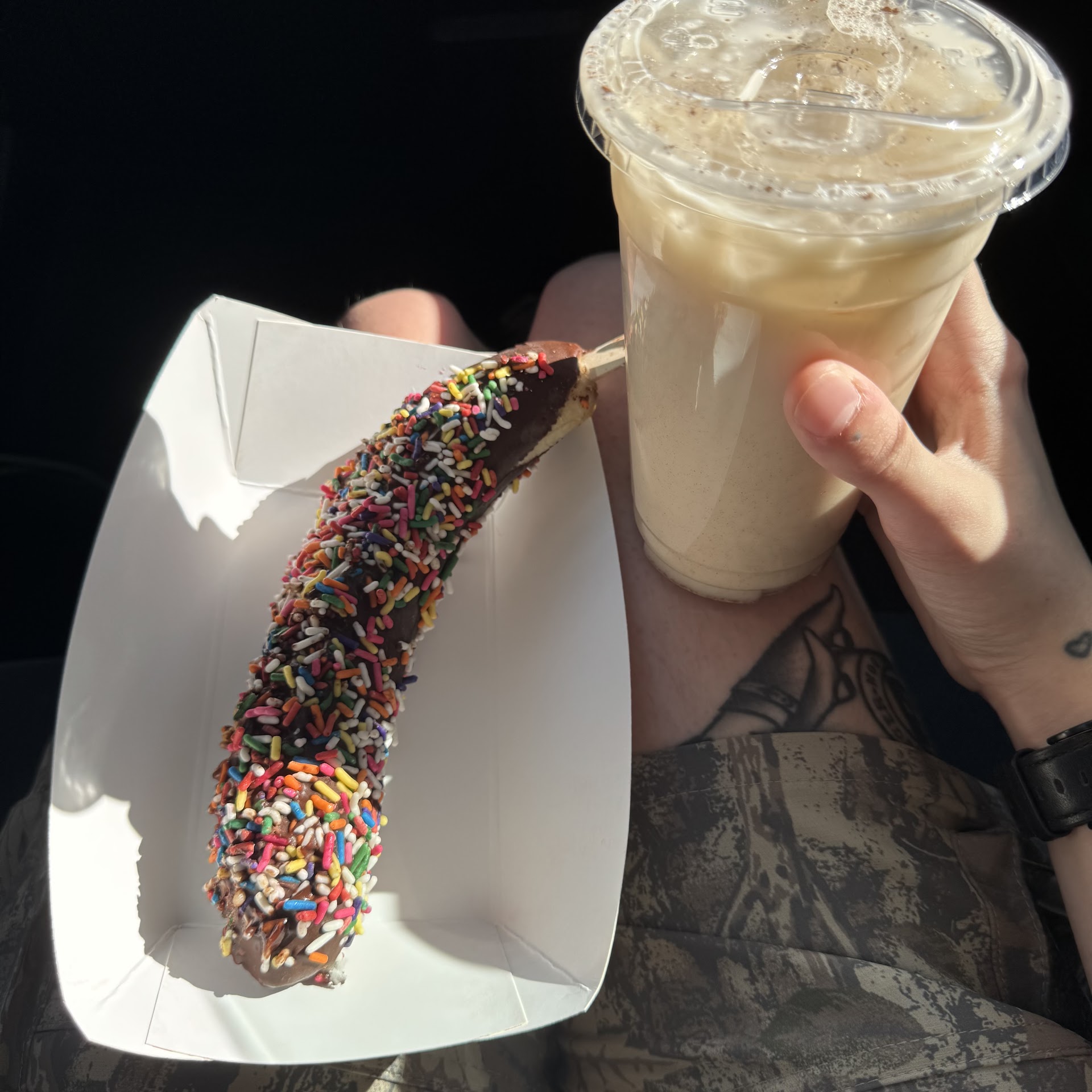 I ordered a large horchata which was amazing, also got a frozen chocolate banana with sprinkles, it was such a good consistency and not mushy or too frozen at all. The chocolate melts in your mouth. My partner ordered two scoops of ice cream, mango and tres leches. The mango flavor was sweet and the tres leches tasted exactly like the real thing.
