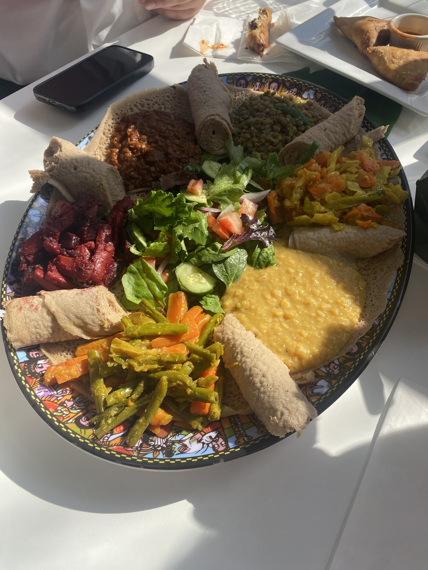 Read moreI came with three of my friends for a little birthday lunch and I will be coming back as much as I can (2 of my friends have already been back). We got the lentil Sambusa’s which were so good we got a second order and the dipping sauce that came with it was the perfect addition. We also got a large veggie platter. It came out warm and me and my friends absolutely demolished. It even came with extra injera! My friend got the ginger tea which came out in a beautiful pot and an extra tea bag. It was so ginger filled that I would come get it if I was sick. I got the jebena coffee and was so happy I did. It came out on a beautiful tray, with bakhoor. It came with enough coffee that you could sip on it all day (reminder that this is traditional Ethiopian coffee similar to other African/arab/turkish coffees so it’s thicker than American coffee and meant to be drank in smaller quantities!) The best part was the daughter sneakily talking to my friend and busting out the back with a cupcake and a candle singing happy birthday to me. So sweet and attentive because no one told them they just overheard me say it. The family that owns this restaurant are some of the kindest people you will meet and so genuine. We talked with them for a little while before we left and it was such a funny and sweet conversation. You see the love in the food. 100/10 I can’t sing their praises enough. (Also to the idiot who wrote a review saying that the SAMBUSAS made with lentils aren’t “traditional” because they weren’t made with potatoes. I’m pleased to inform you that’s because SAMOSAS are made with potatoes not SAMBUSAS. It’s also absolutely insane to call a young woman’s energy “insecure” as a fully grown woman. Maybe you should reassess why you felt that way, because she was sweet and professional with us. Maybe it’s because you came in with a...