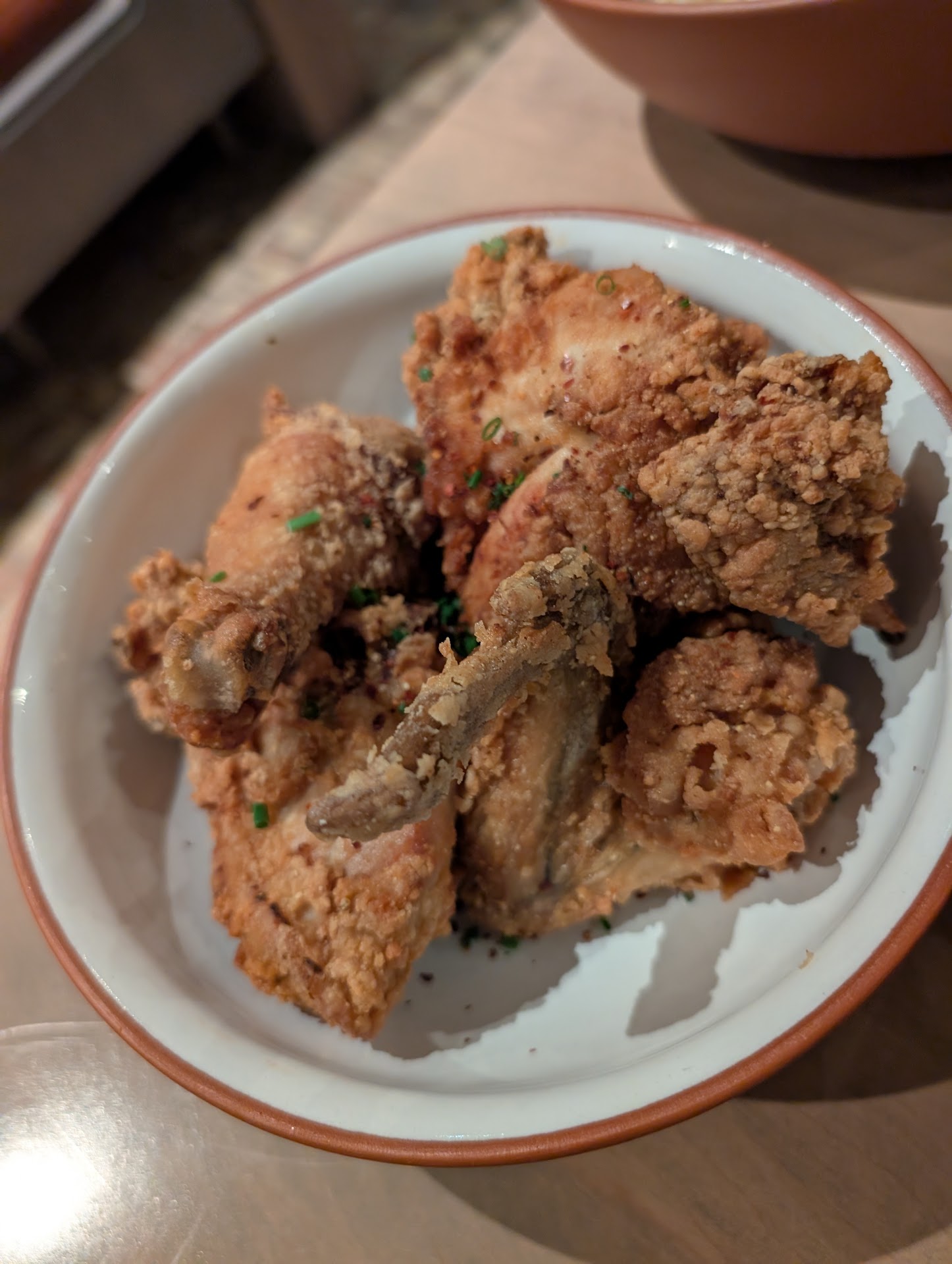 Dinner service was much more tight and efficient, which I anticipated. Simone may be one of the best servers I've ever experienced! She was lively, funny, knowledgeable and personable. We solely ate from the 'shareables' section and I found everything to be portioned well. The dry rub wings was some of the best I've eaten! The seasoning is remarkable - don't change a thing! The duck fat fries were equally delicious. I would've liked the dijonnaise to have a stronger taste with lemon or garlic but I realize that's my personal preference. Next was the curried cauliflower that was served with raita. Although delicious, it wasn't a favorite of the night. Lastly the braised lamb hummus arrived and it was certainly a favorite of the night! The lamb was very tender and the extra crispy chickpeas on top was a great touch! Loved the tender and homemade flat bread that was served with it - amazing!