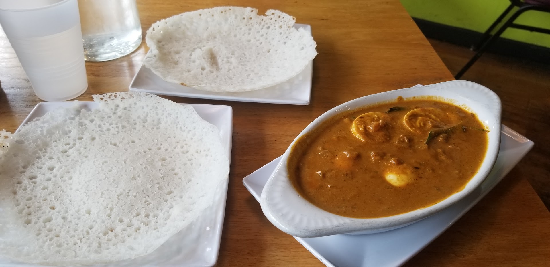 We were served a jug full of hot water on request, before we began ordering. The orders didn’t take a longer time to be served. Me and my wife had paalappam with potato stew and More curry with a side of rice while others had chicken and egg curries. The spice level wasn’t ‘Indian’ hot though we had requested specifically to be that. Nevertheless, the food tasted pretty well, the quantity was sizable and wasn’t...