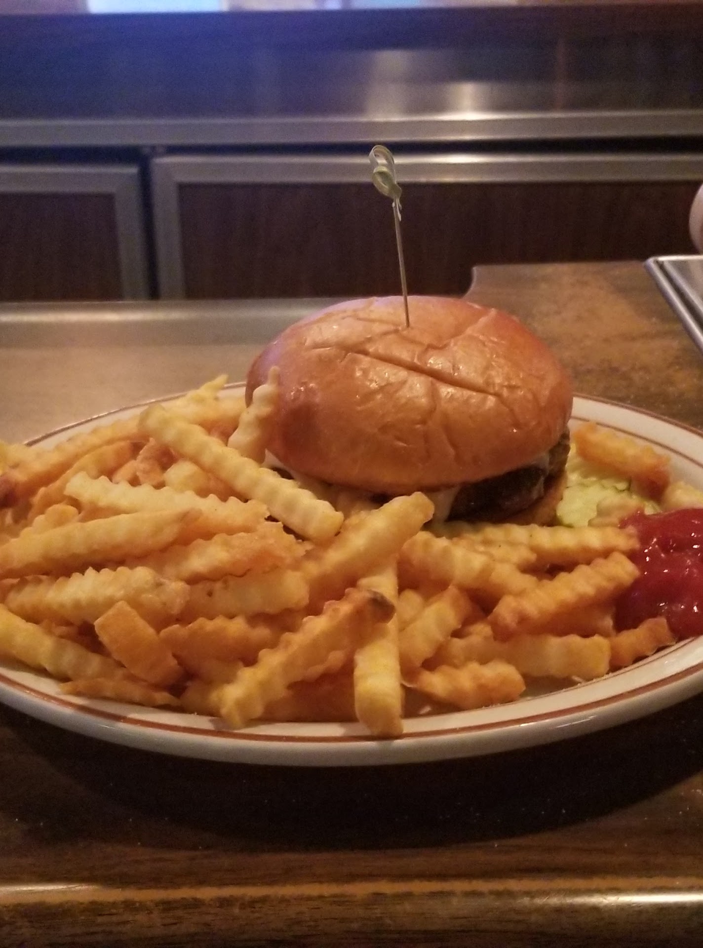 The burger is a hand formed third pounder with a nice buttery bun. The crinkle cut fries are crispy and they leave off the salt, letting me decide how much, if any, salt I want. And it is a big serving, more than I should eat but I push through.