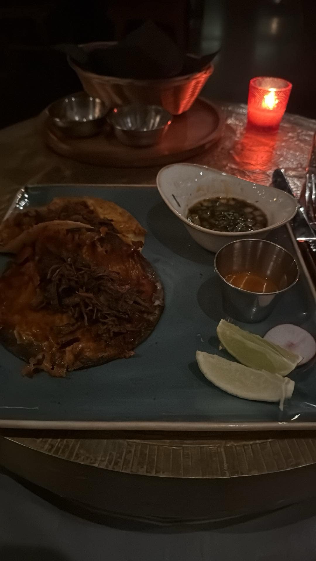 Read moreVisiting my family & friends from NYC, we wanted to have a fun girls night, came in Saturday night unaware of the Dia De Los Muertos event. First, Ella at the front door was such a sweetheart and is the reason we decided to buy tickets. $45 dollars for food that does not reflect the menu but was old, cold, tasted like cafeteria food and has been sitting out felt like a total waste of money. But nonetheless we’d hoped the drinks would make up for it. TERRIBLE experience with Alex at the bar. There was NO olive juice in the EXTRA DIRTY martini. Straight Vodka for my mother who is clearly older than she could barely sip. The rest of us ordered spicy margaritas. We watched him make the original margaritas and thought it surely wasn’t ours & was probably someone esle’s because they were missing the peppers and not spicy at all and he had the nerve to be seemingly annoyed when we at minimum asked for a tahin rim (hence, SPICY) ..and then ended up giving us stale glasses where the tahin was too hard to even be tasted off the glass. The tamarind mezcal we ordered 2nd was missing tamarind altogether & tasted like straight reposado, terrible. If you have a bad attitude, the least you could do is make us the drinks we ordered and not be rude about it. Thankfully he was more concerned with wanting to go chat with his friends at a table and we had the pleasure of meeting the other bartender, Samantha. She was AMAZING! She offered to fix our drinks and reassured us that it was no problem because we felt so bad complaining. She emphasized truly wanting us to enjoy our drinks and not force it, and is the reason we even ordered anything else. We ultimately ended up leaving much earlier than intended to go somewhere else since we didn’t want to continue to time our bar rounds on when Alex was not there. Based on his service, I’m not inclined to return unless absolutely necessary. 3 stars for atmosphere, Ella,...