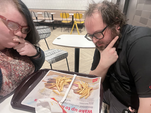 When she saw that it was their fault, she yelled "give it to me!!" We handed her our burgers including my hot fries which I had emptied into the lid of the quarter pounder box. Keep in mind they never once apologized. After a few minutes and what sounded like the manager yelling at the other employees, a young girl came back to hand us our order without saying anything and instead giggled and turned her face while just standing there there like an idiot. Still no apology.